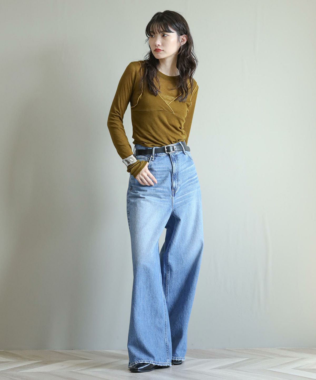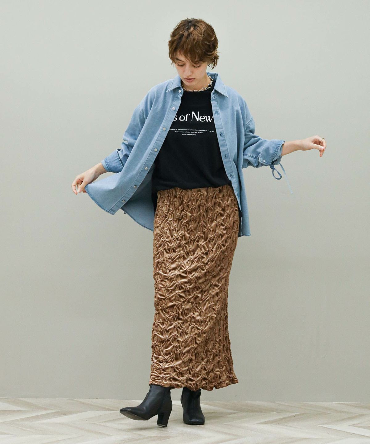 袖ドロストデニムシャツ
