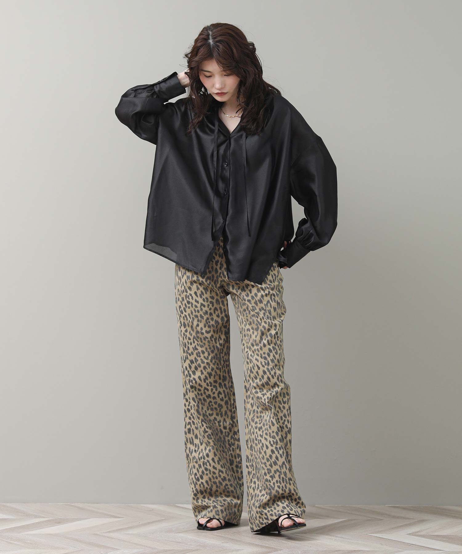 存在感のあるレオパ―ドパンツ。