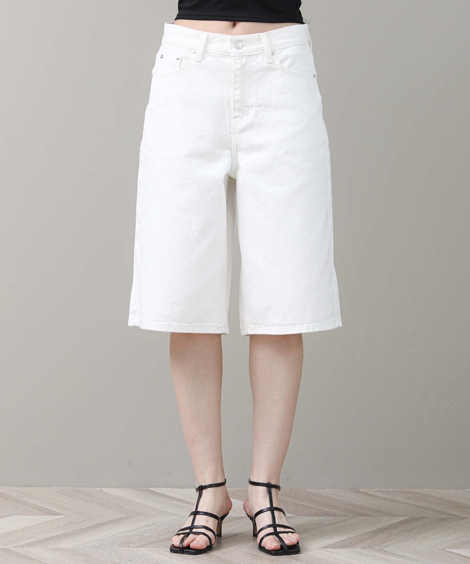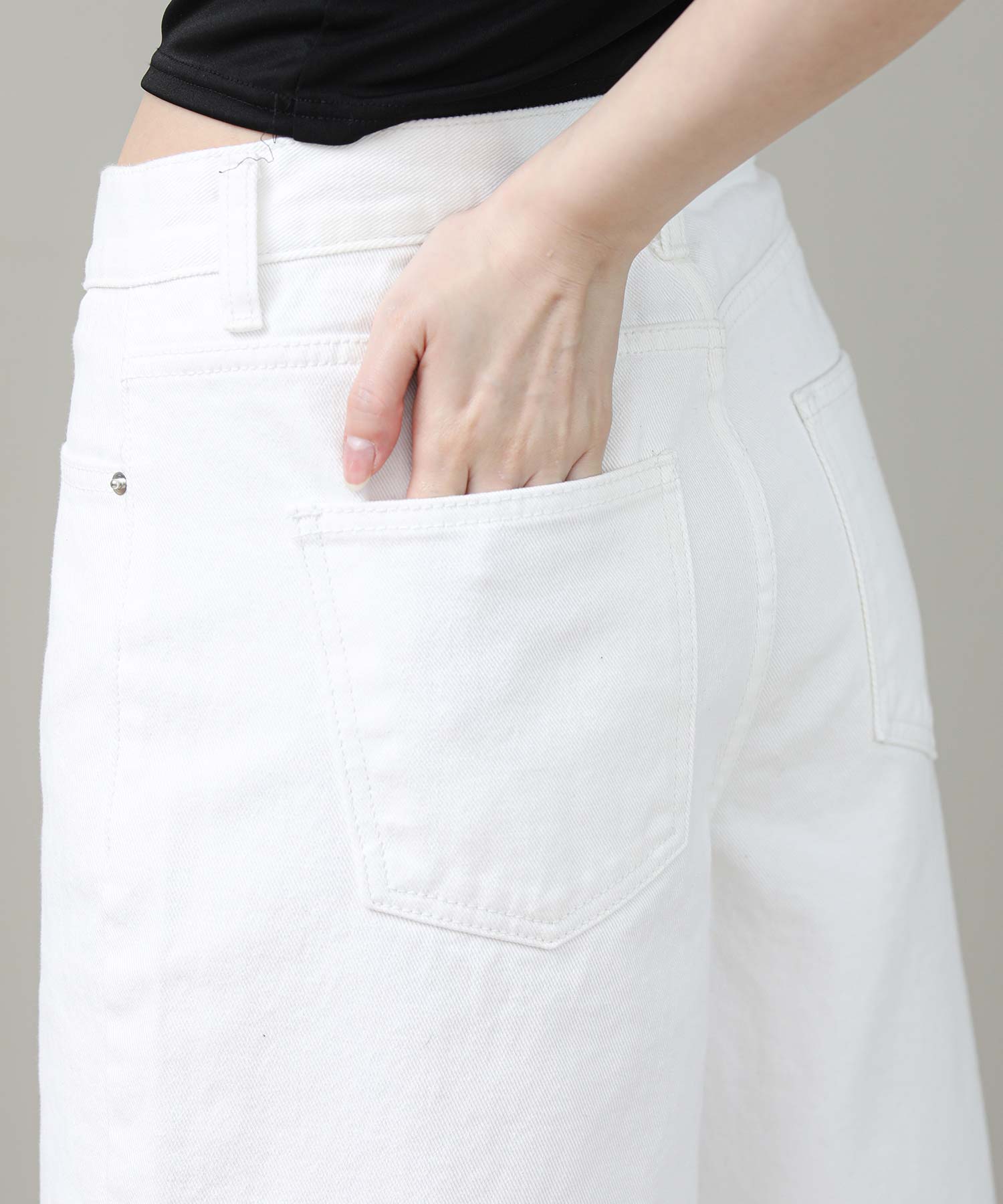 クリーンなホワイトデニムが爽やかな1本です。ゆったりとしたシルエットですが、腰回りはすっきりしているので、スタイルアップ効果も◎足元はサンダルやヒールで女性らしくまとめるのがおすすめです。