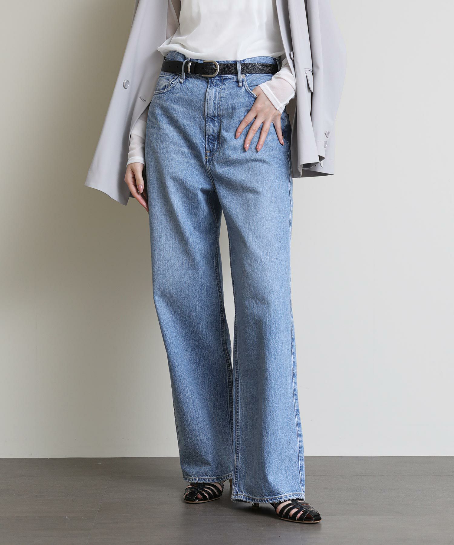 ウエスト周りはすっきりとさせたハイライズ、膝や裾は大きく取ったワイドストレートデニム。腰位置が高く見え、脚長効果抜群の1本。あえて腰履きをし、裾にクッションを持たせルーズに履く履き方もお勧めです。