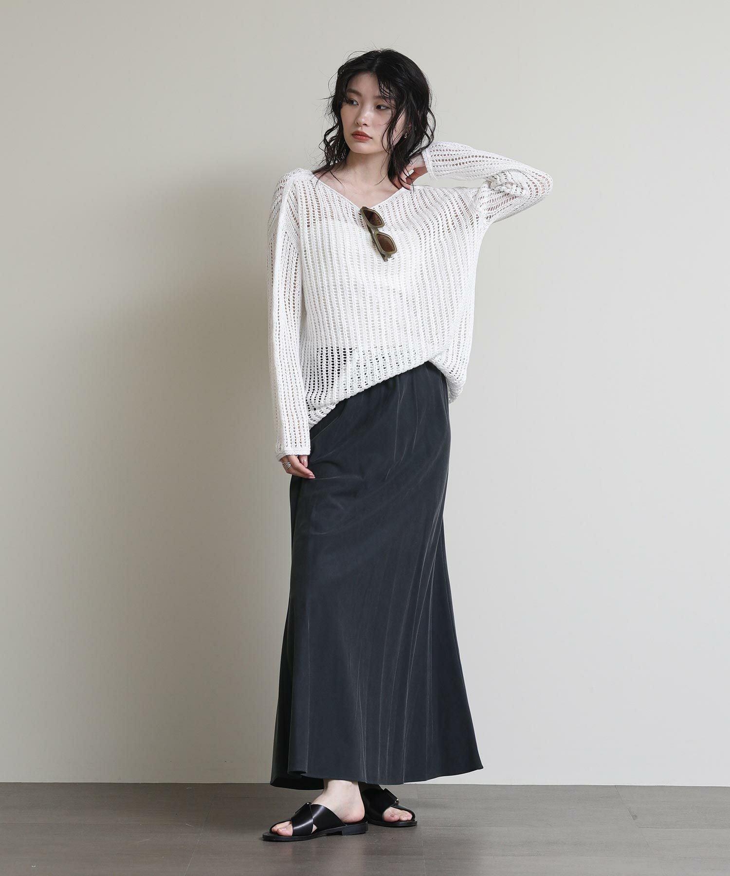 定番人気のマーメイドスカートを、微光沢のツイル生地でアップデート。
