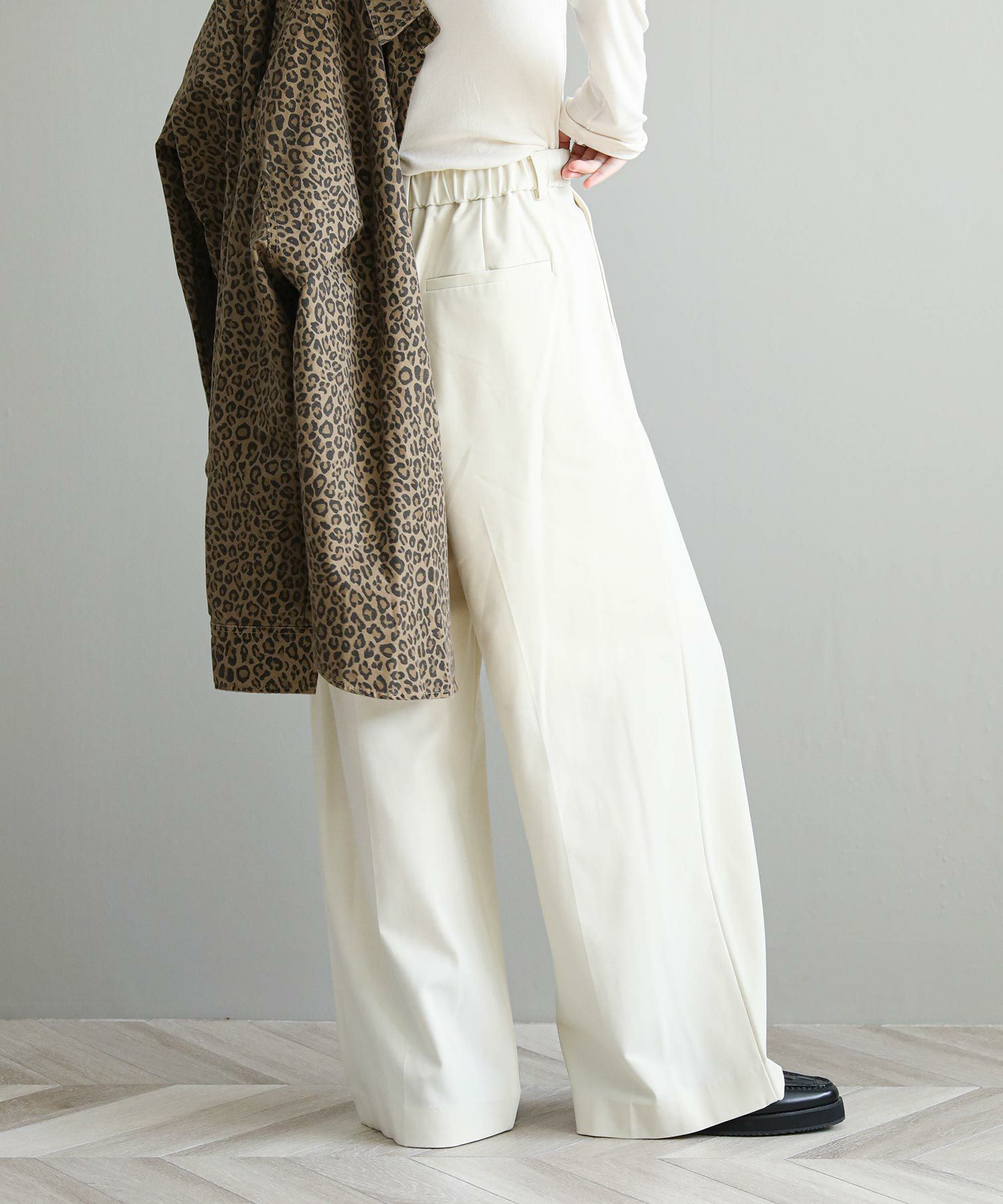 縦のラインが綺麗に出る足長効果◎のワイドパンツ。