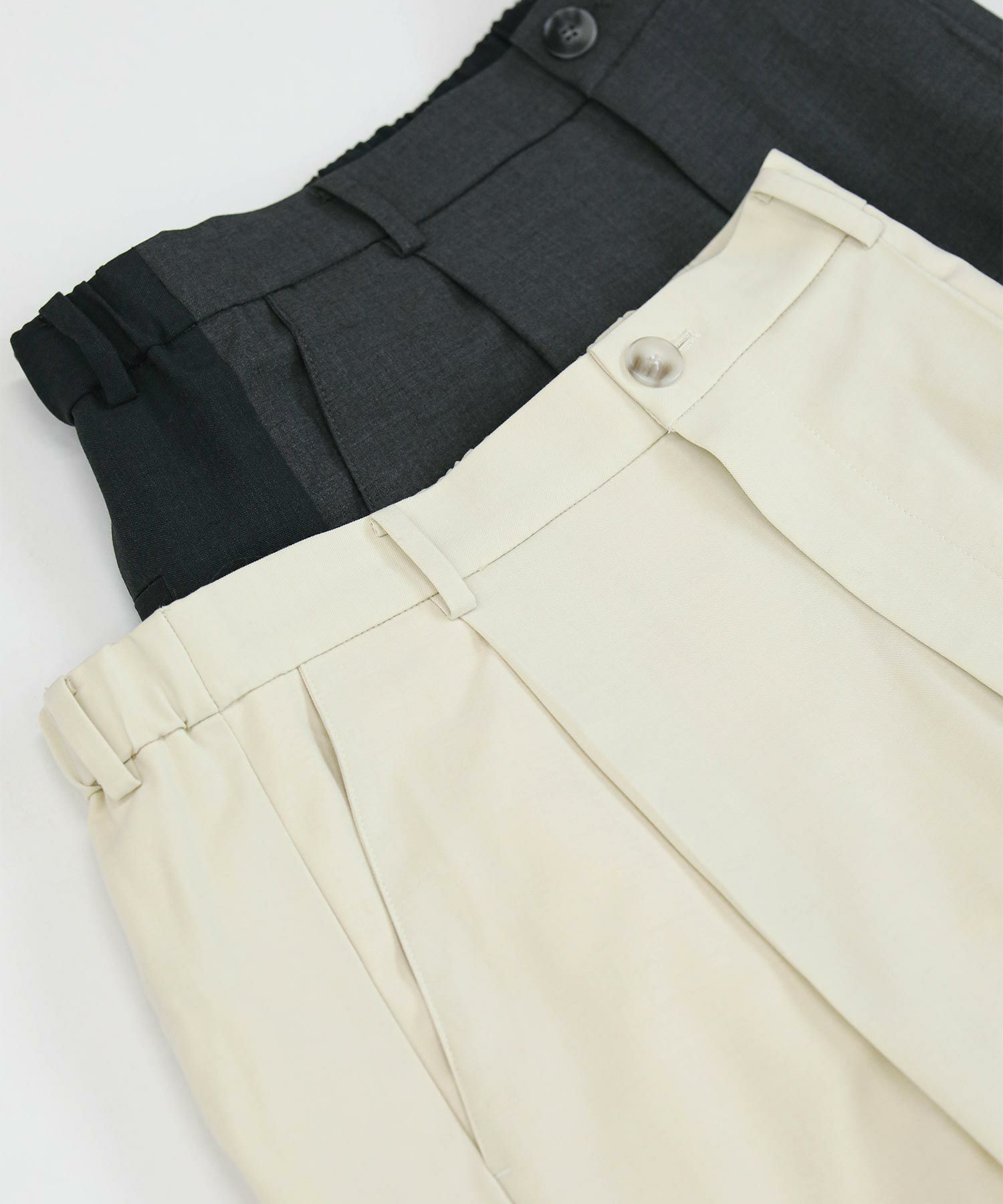 チャコールは前後が微配色仕様。同トーンでの配色なので悪目立ちせず、さりげないお洒落を楽しめます。アイボリーは同一カラーです。きちんと感もありお仕事着にもおすすめ。