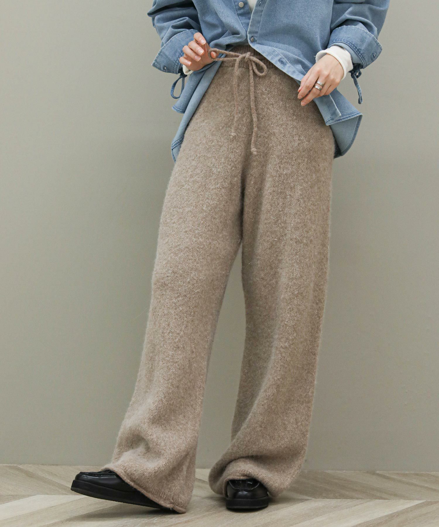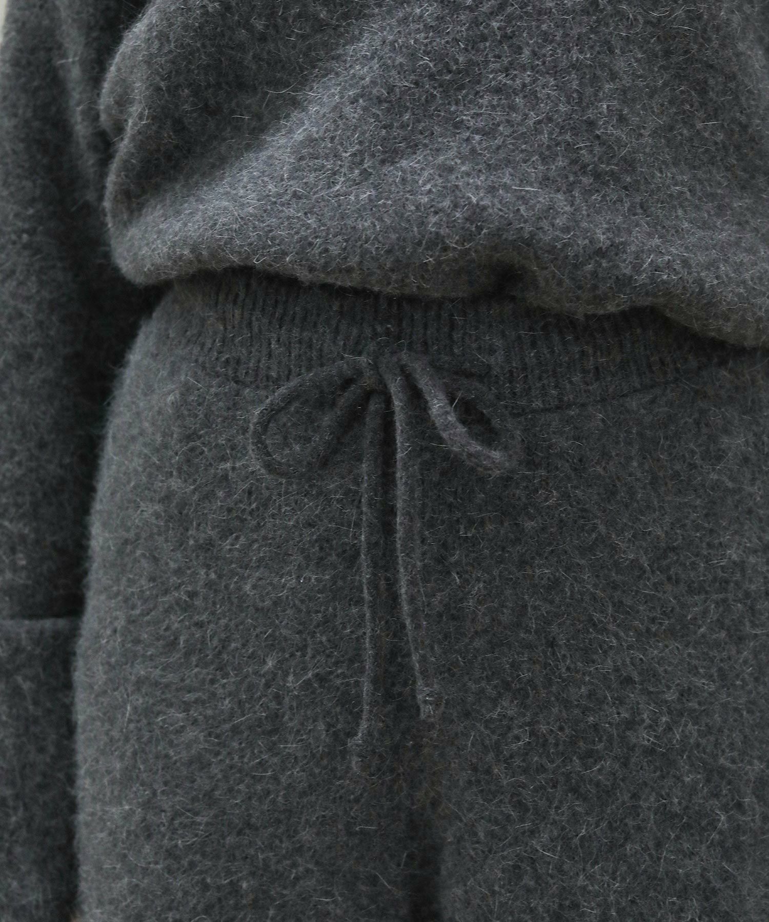 毛足の長いふんわりとしたニットのドロストパンツ。
