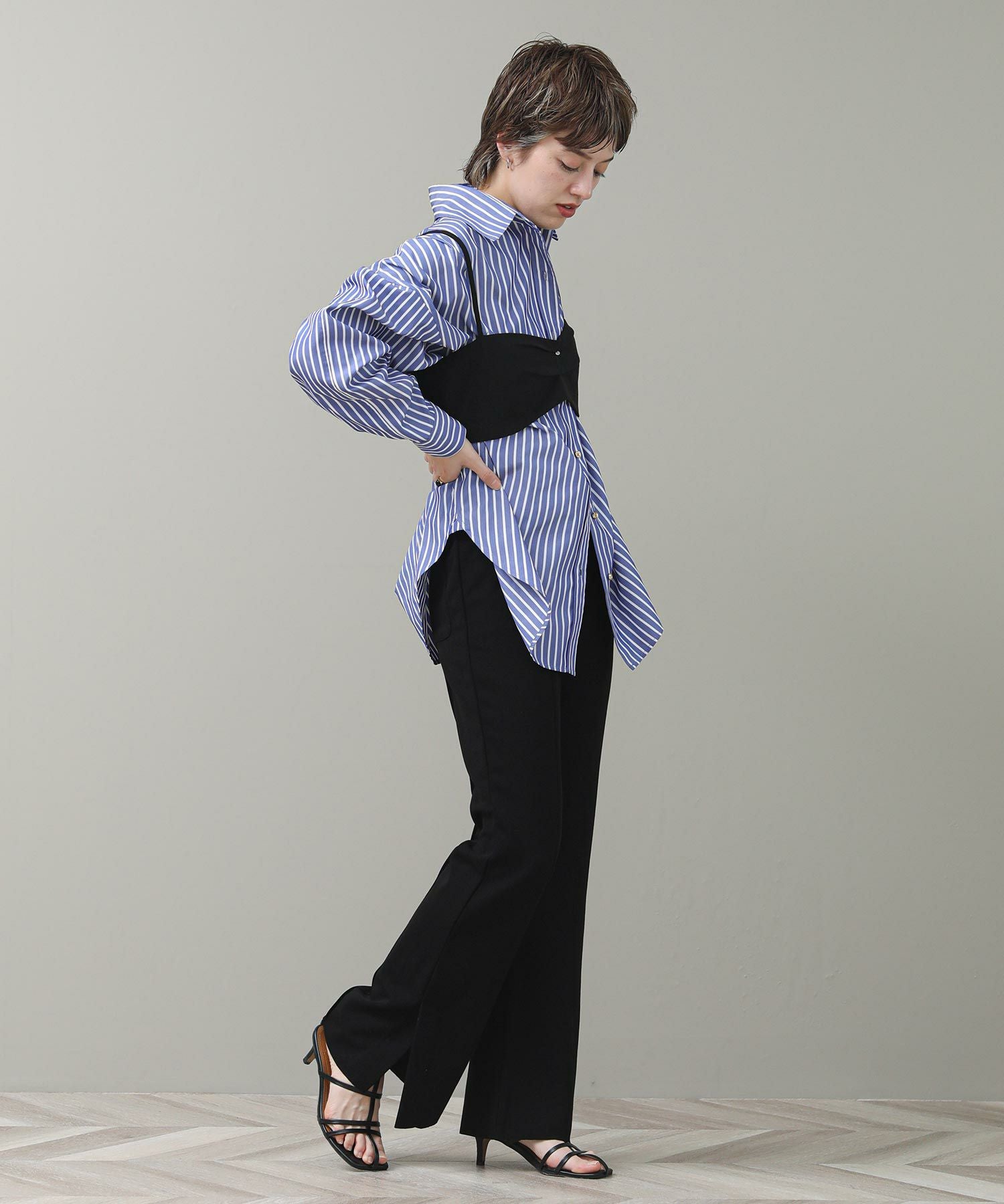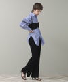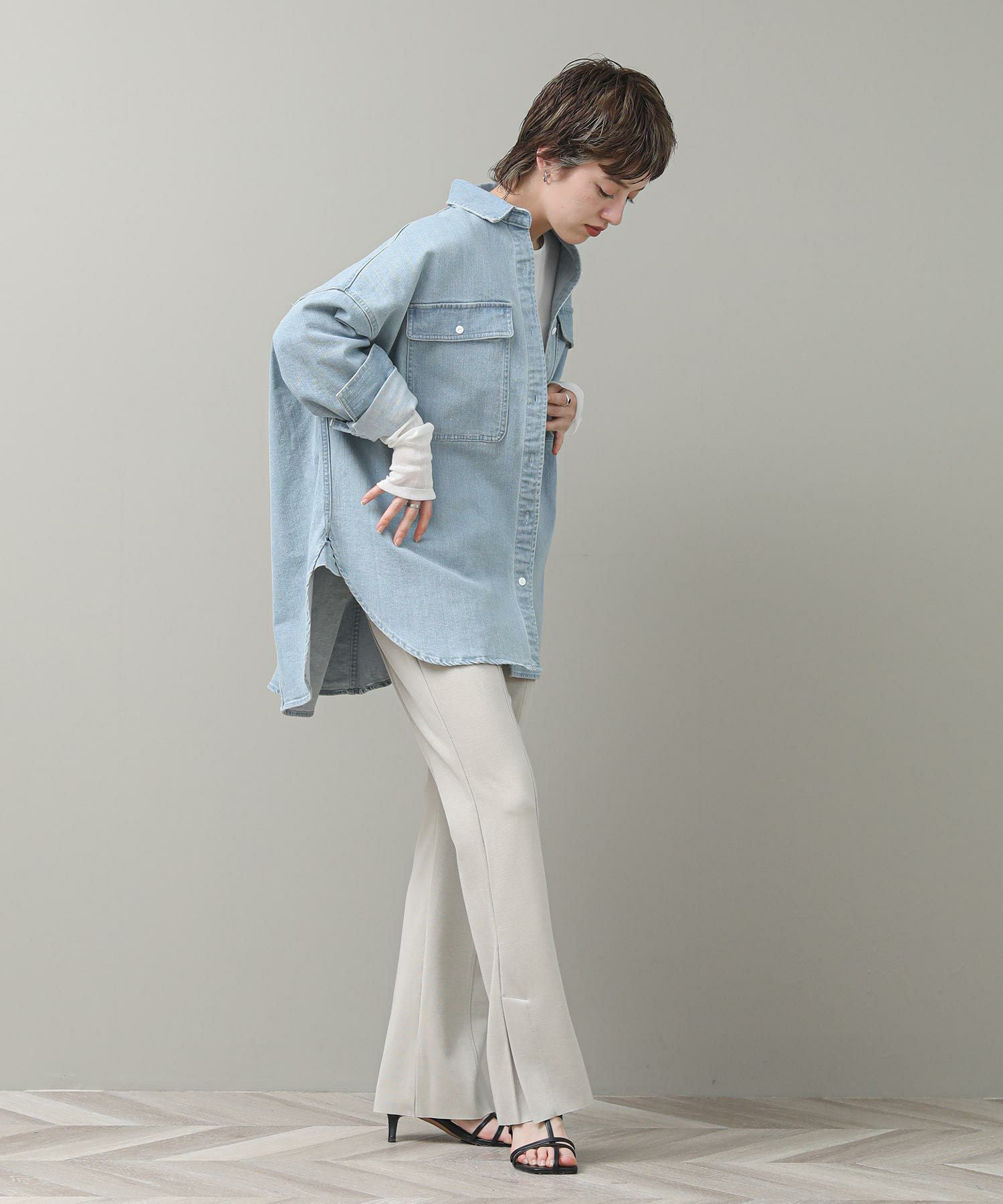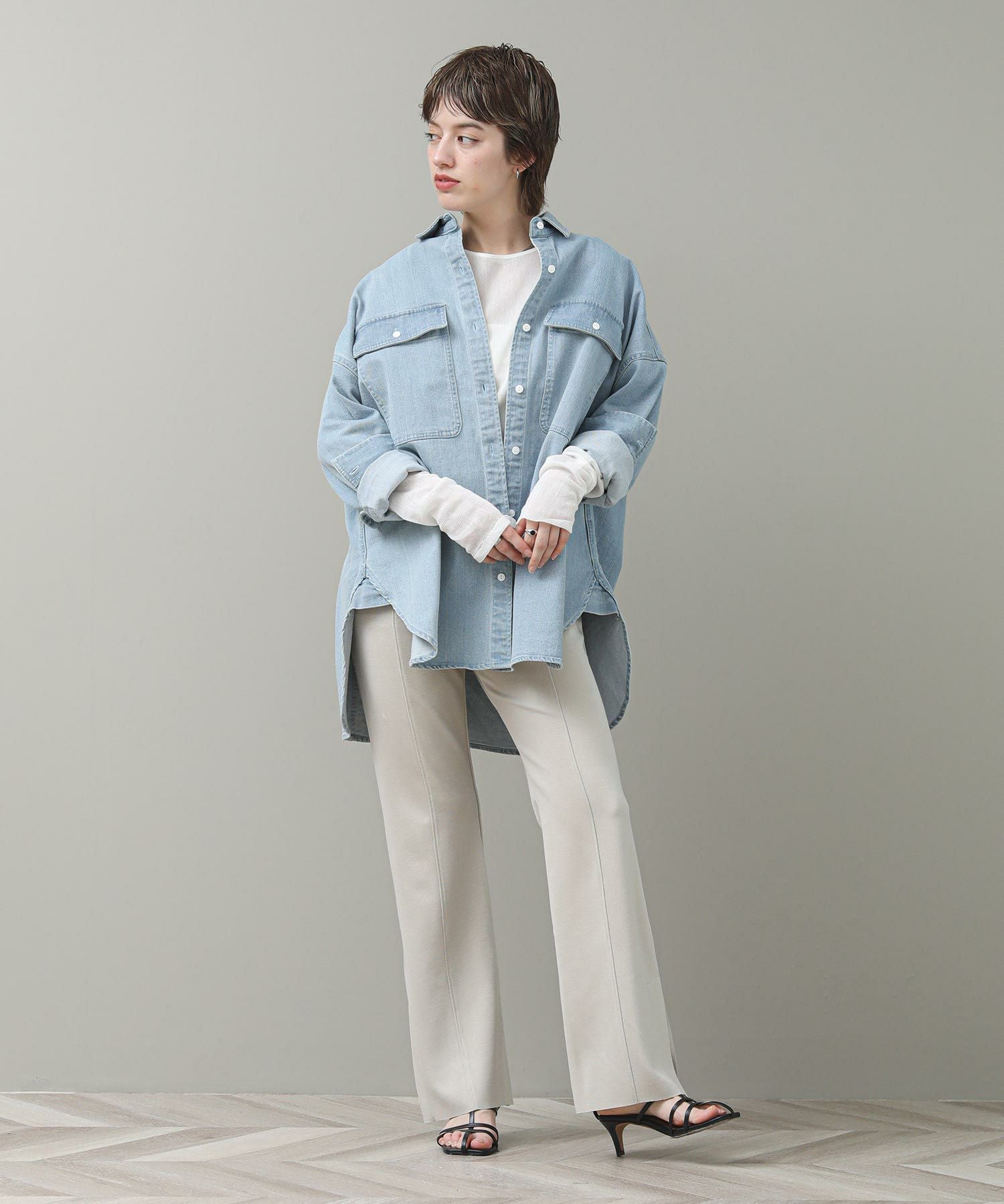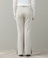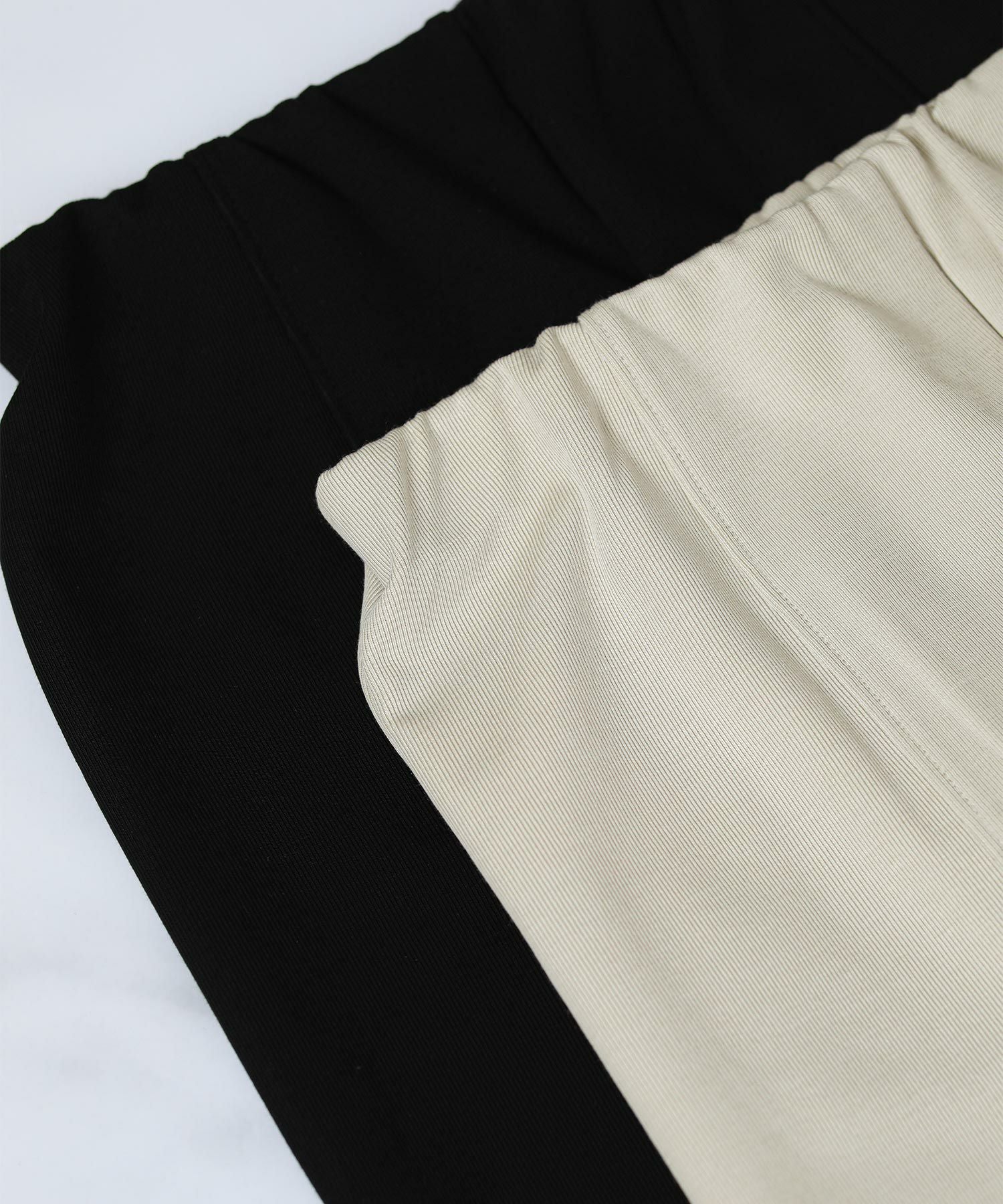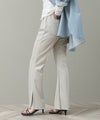 カジュアルな印象のあるリブですが、美しい落ち感と程よい光沢感できれいめな表情が魅力です。シルエットは、脚長効果を最大限に引き出すフレアライン。裾のサイドベンツが歩くたびに軽快な抜け感をプラスします。ウエストはインゴム仕様でリラックスして着用でき、ヒップポケットのデザインが、スパッツ感なく普段使いしやすいルックスを確立します。履いていることを忘れるほど楽ちんな着心地と、どんなトップスにもマッチする万能性は、レイヤードスタイルから主役使いまで幅広く対応でいる万能パンツです。