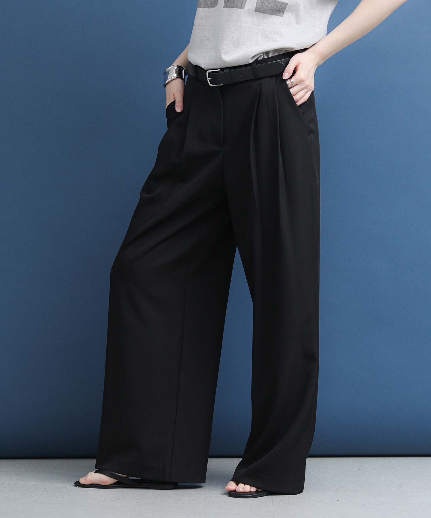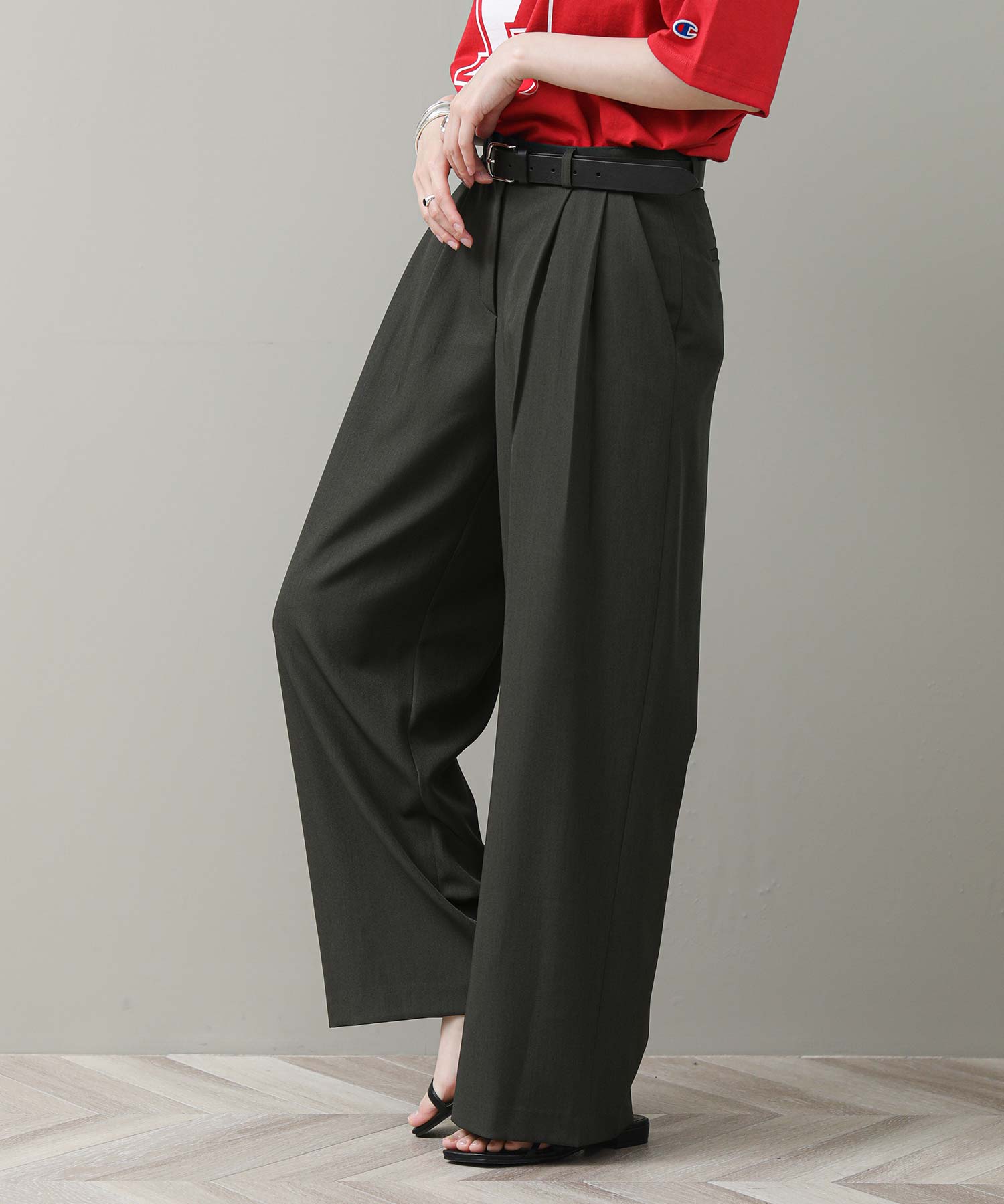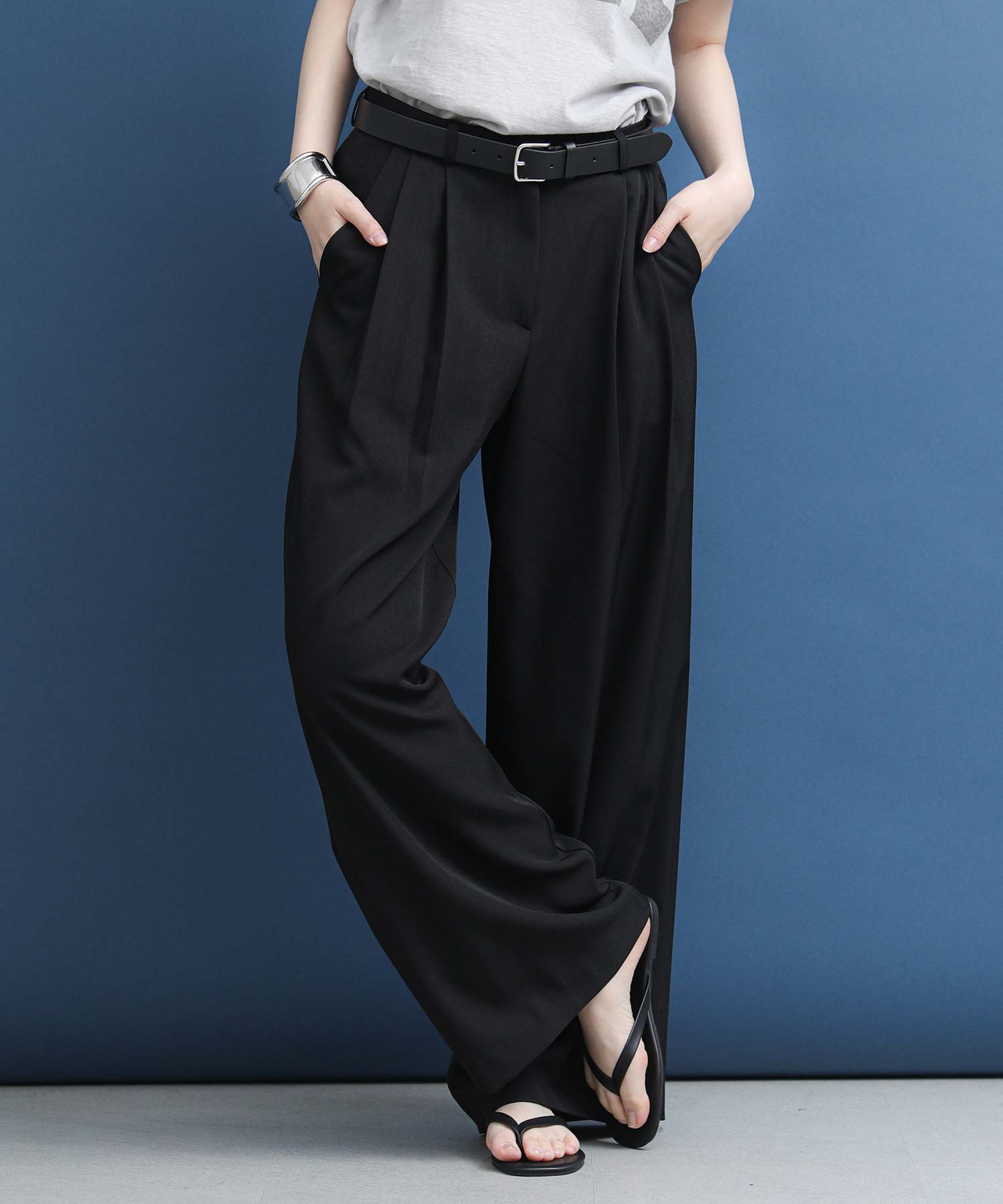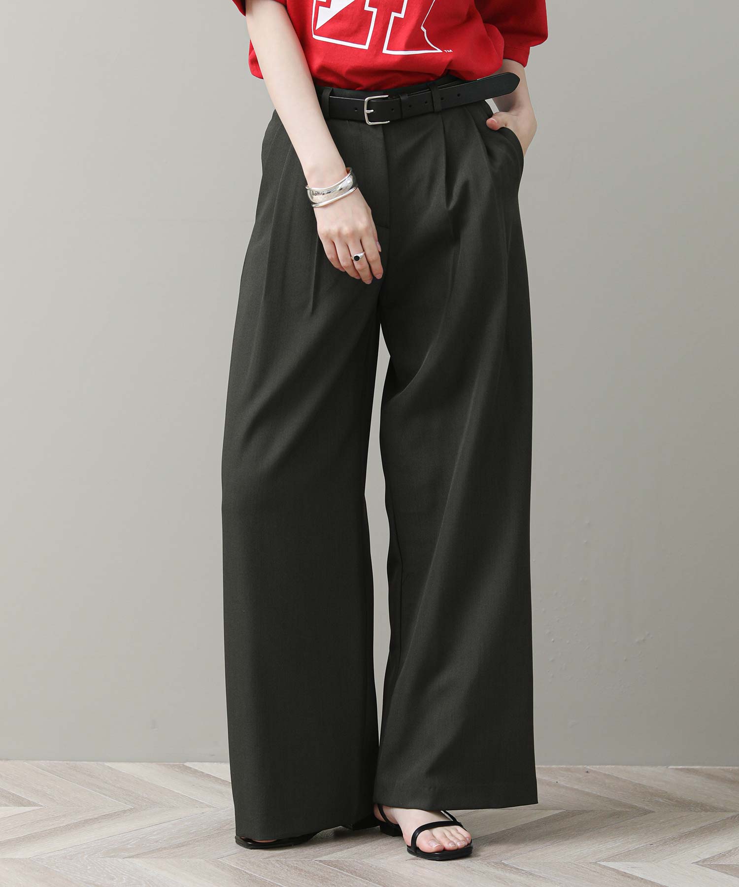 程よい抜け感と上品さを兼ね備えた、今季マストのタックワイドパンツ。