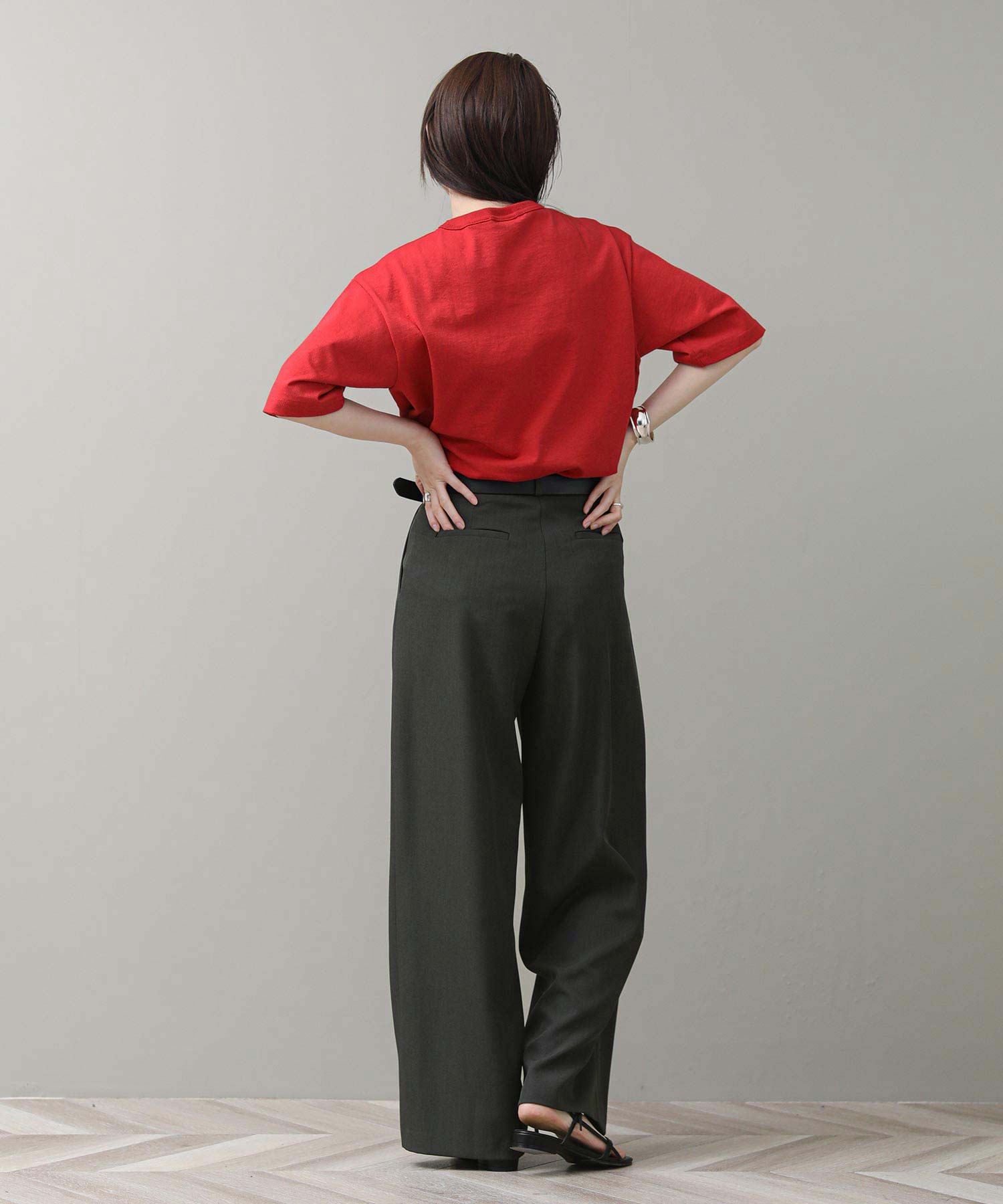 ゆったりとしたワイドシルエットながらも、落ち感のある素材を使用することで、すっきりとした印象に。オン・オフ問わず着回しやすく、シャツやブラウスを合わせたきれいめスタイルはもちろん、Tシャツやスウェットでカジュアルダウンしたコーデもおすすめです。