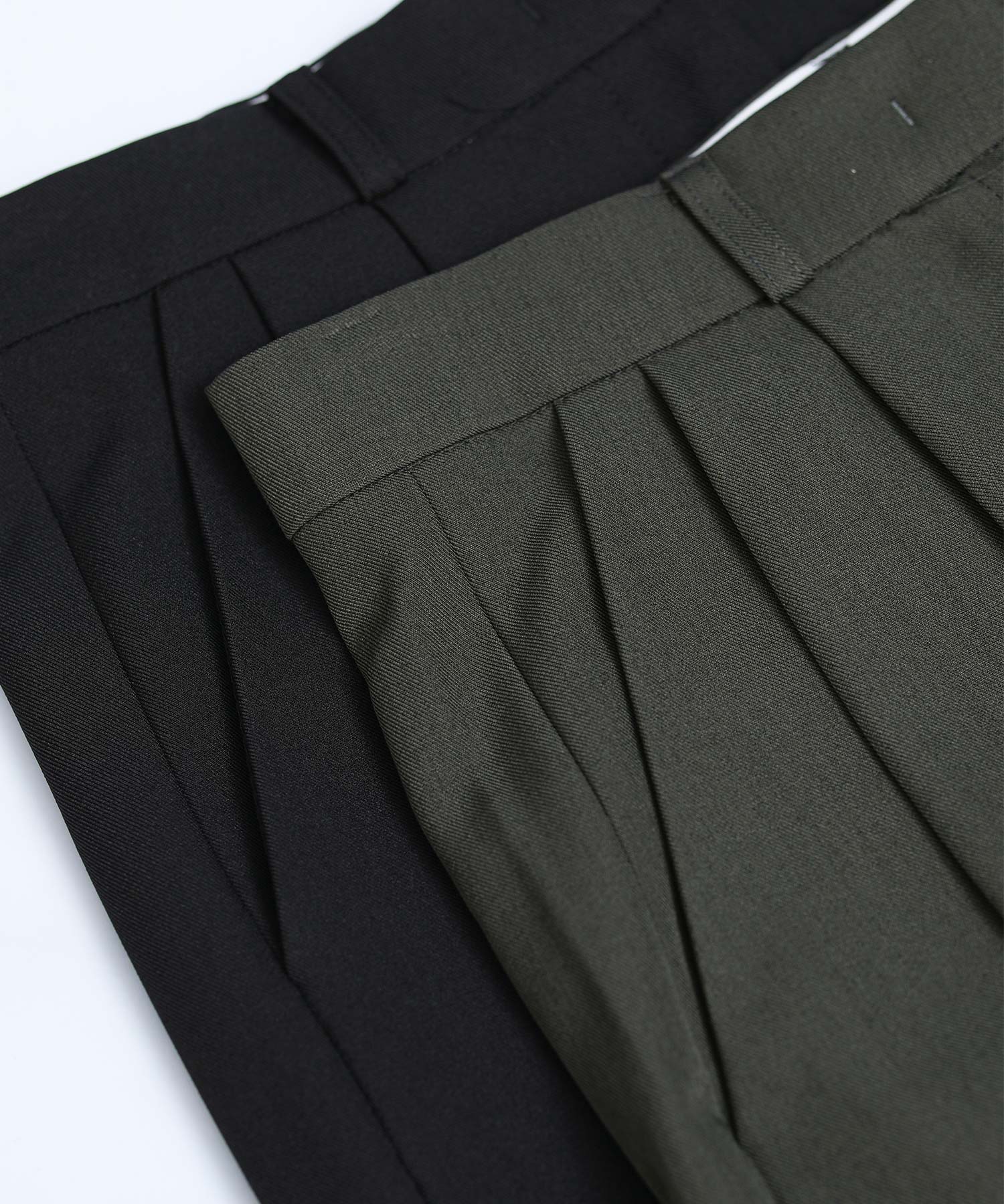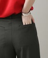 フロントに施したタックが立体感のあるシルエットを生み出し、気になる腰回りや脚のラインをさりげなくカバーします。