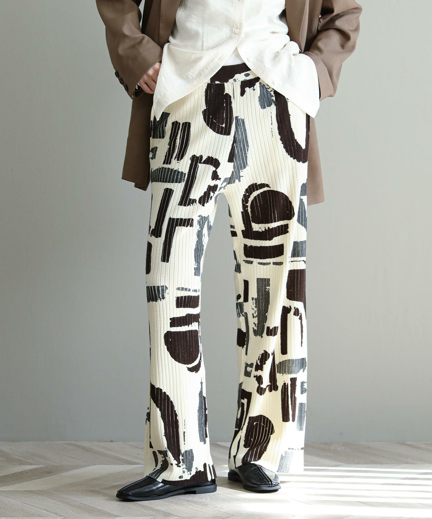 1953年にイタリアでテキスタイルデザイナーとしての活動を開始したBruno Boggiaの抽象画をプリントしたニットパンツ。