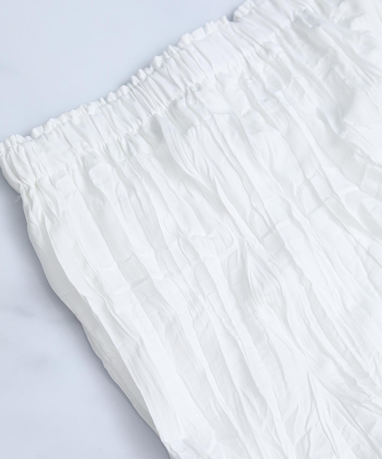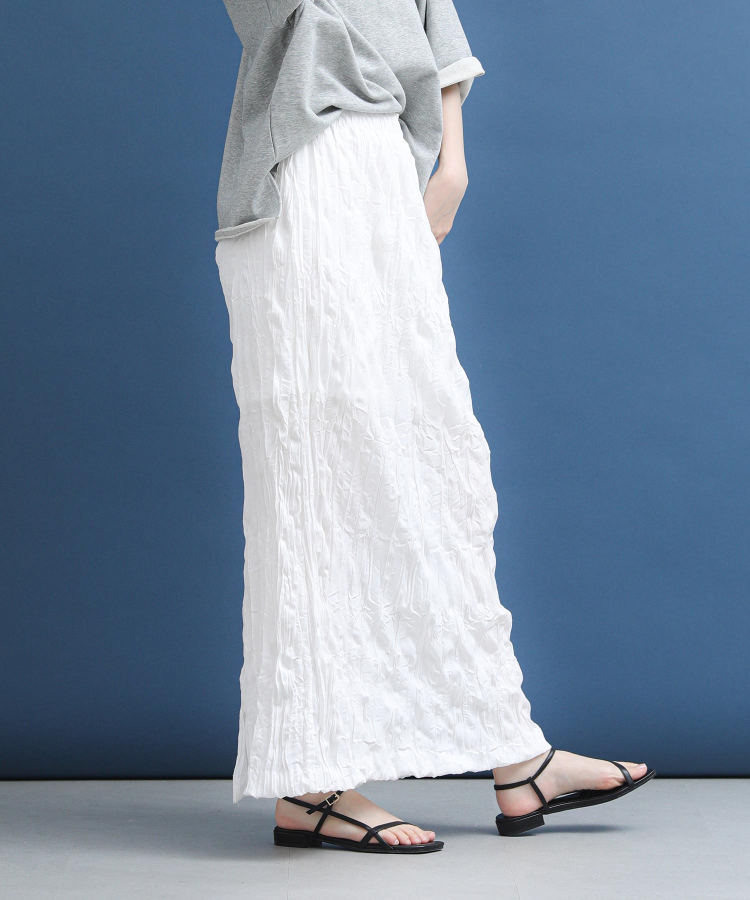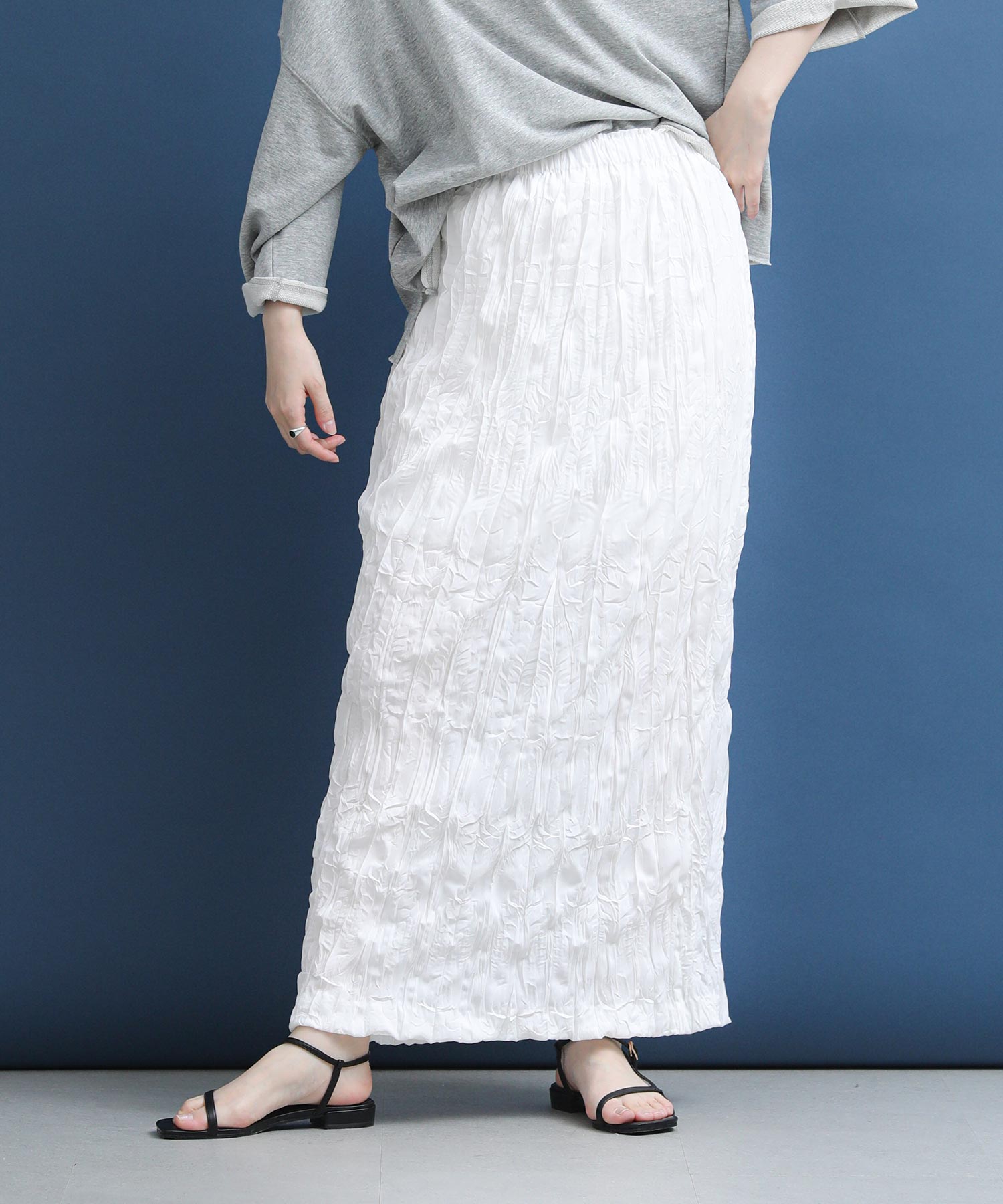 シワ加工の立体的な表情が目を惹くスカート。