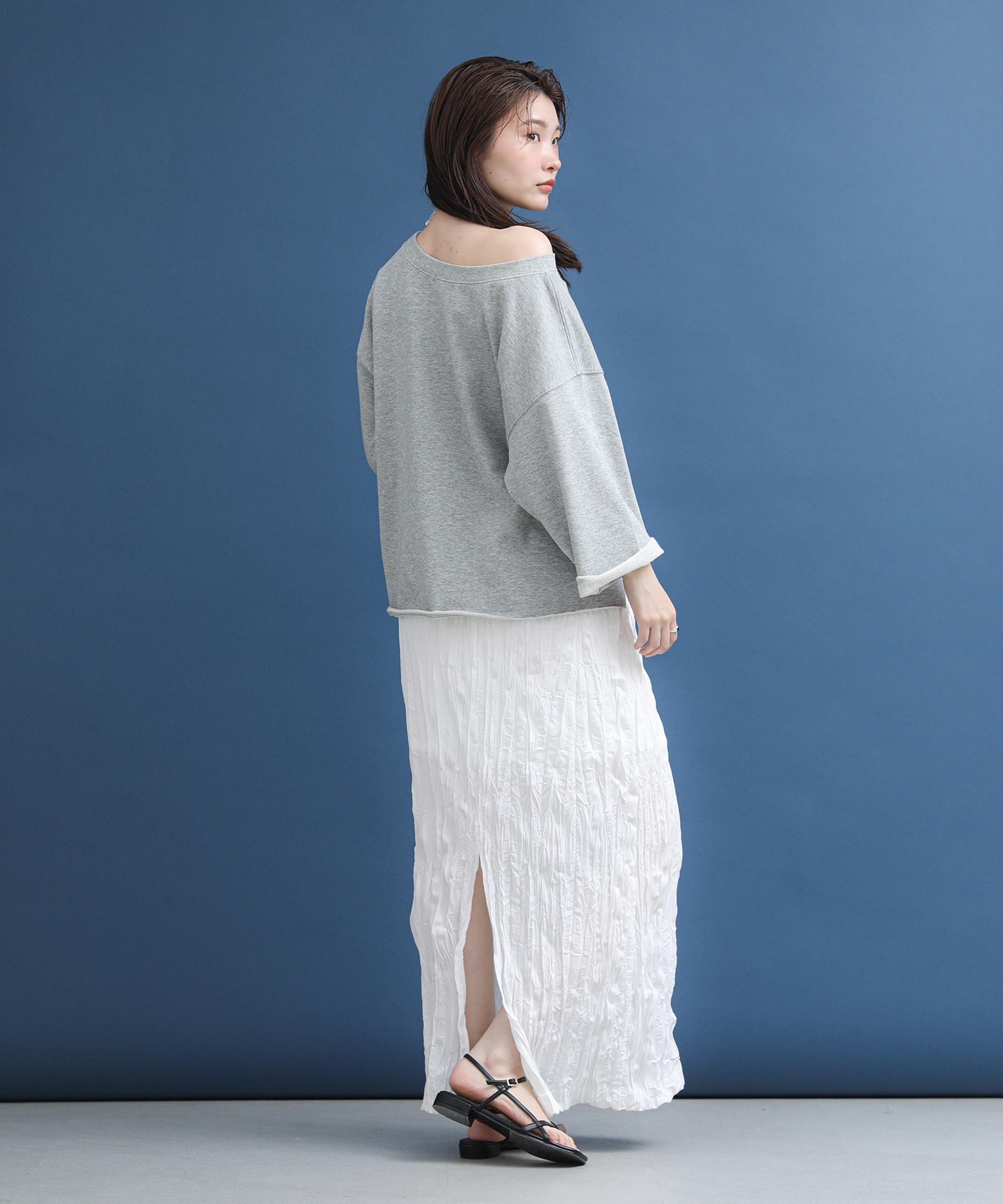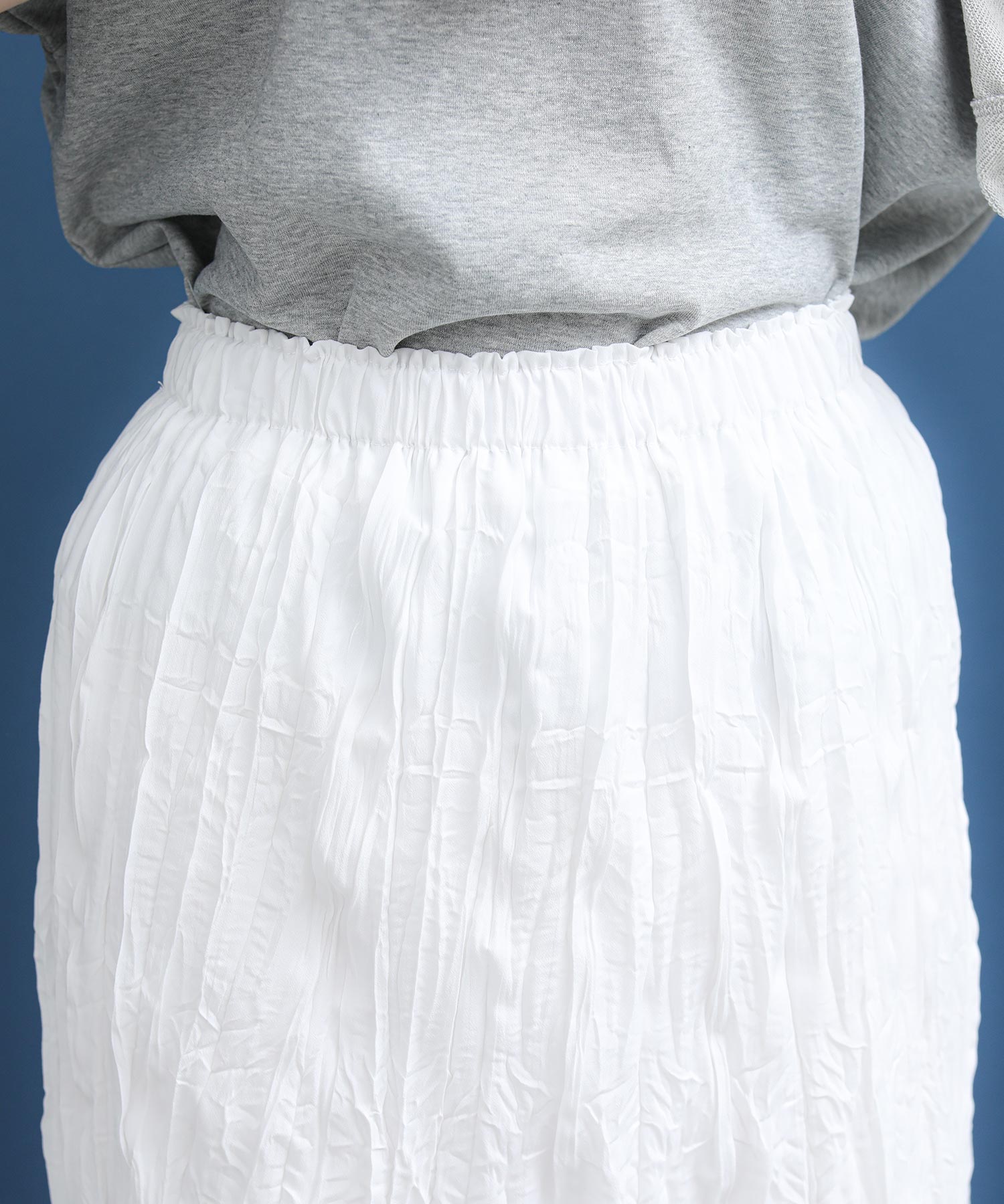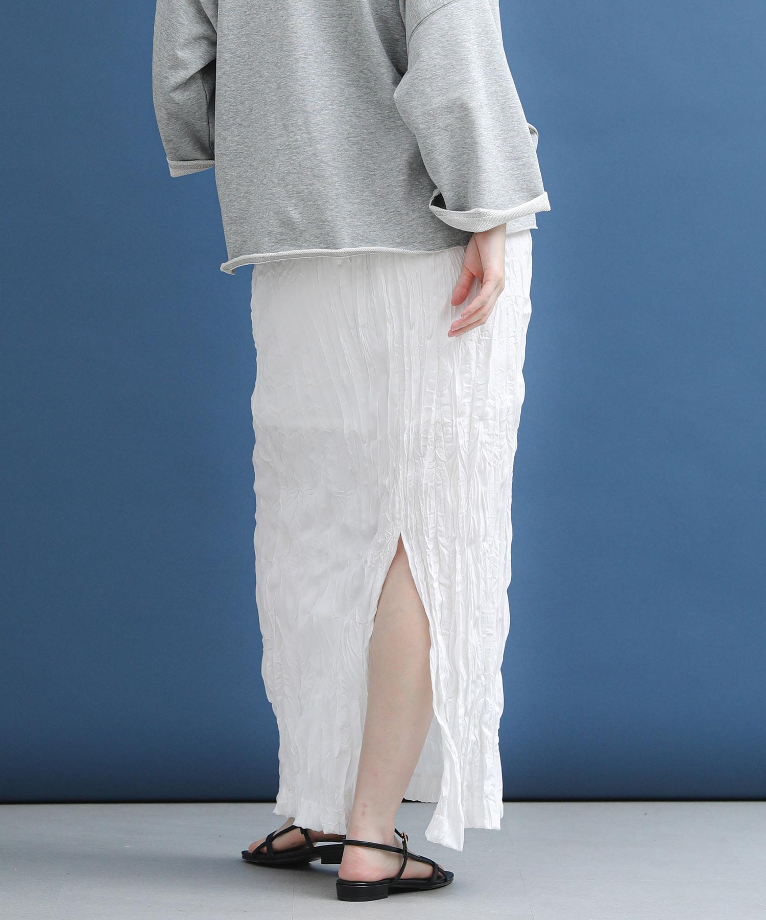 シワ加工の立体的な表情が目を惹くスカート。