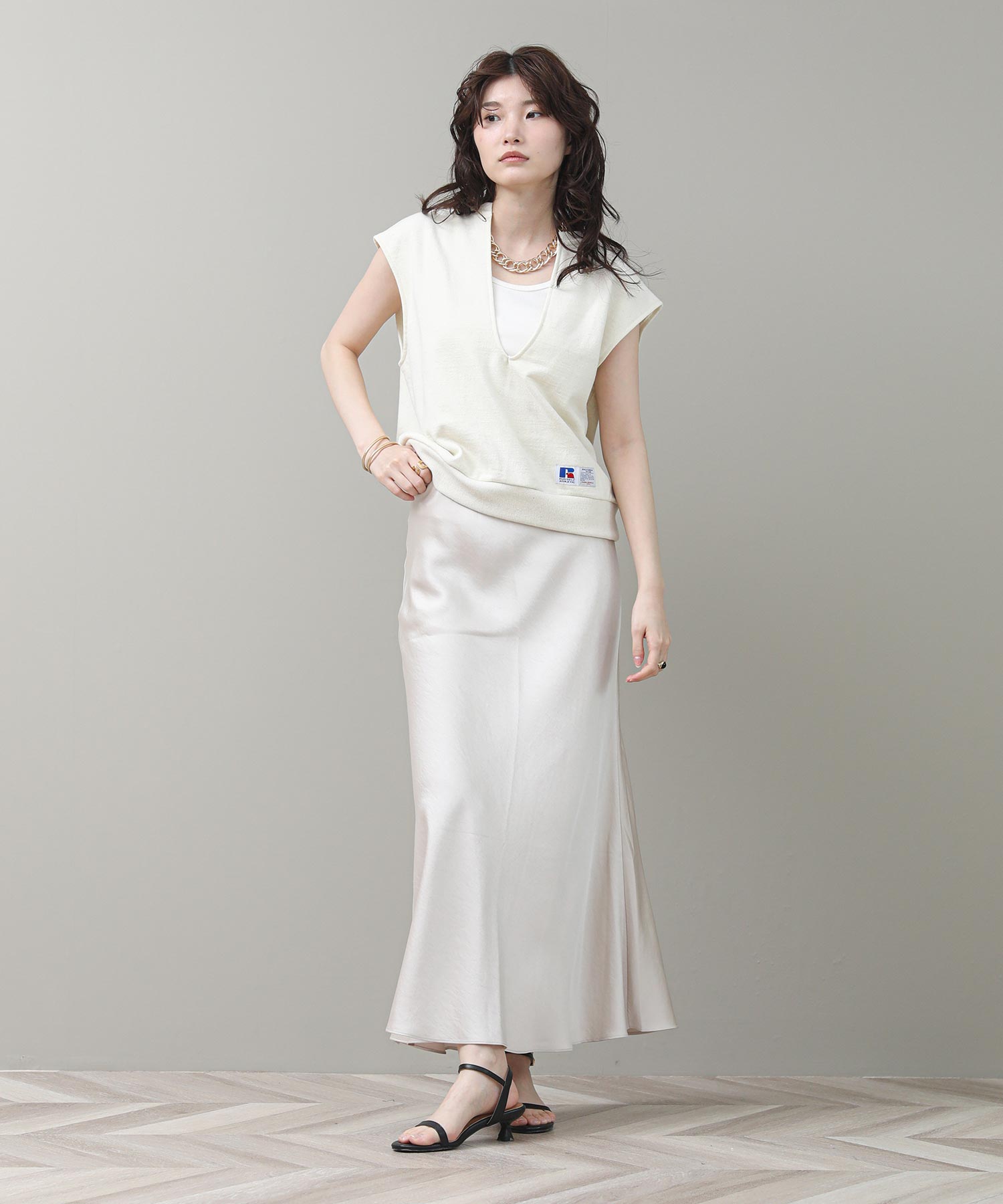 ※着用画像は撮影状況、光の当たり具合で色みが違って見える場合がございます。実際の色みについては、画像一覧の最後に掲載している詳細画像をご参照ください。