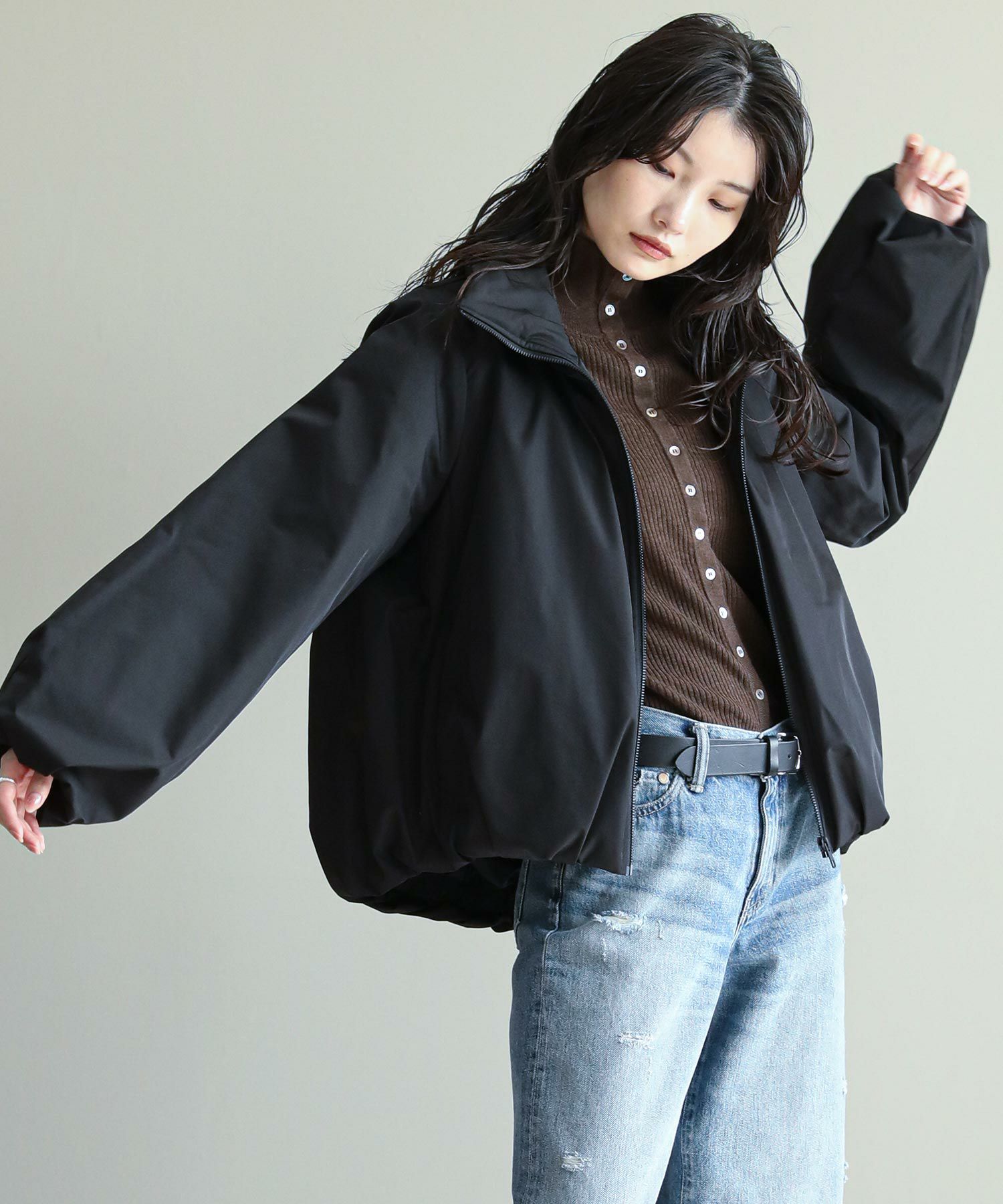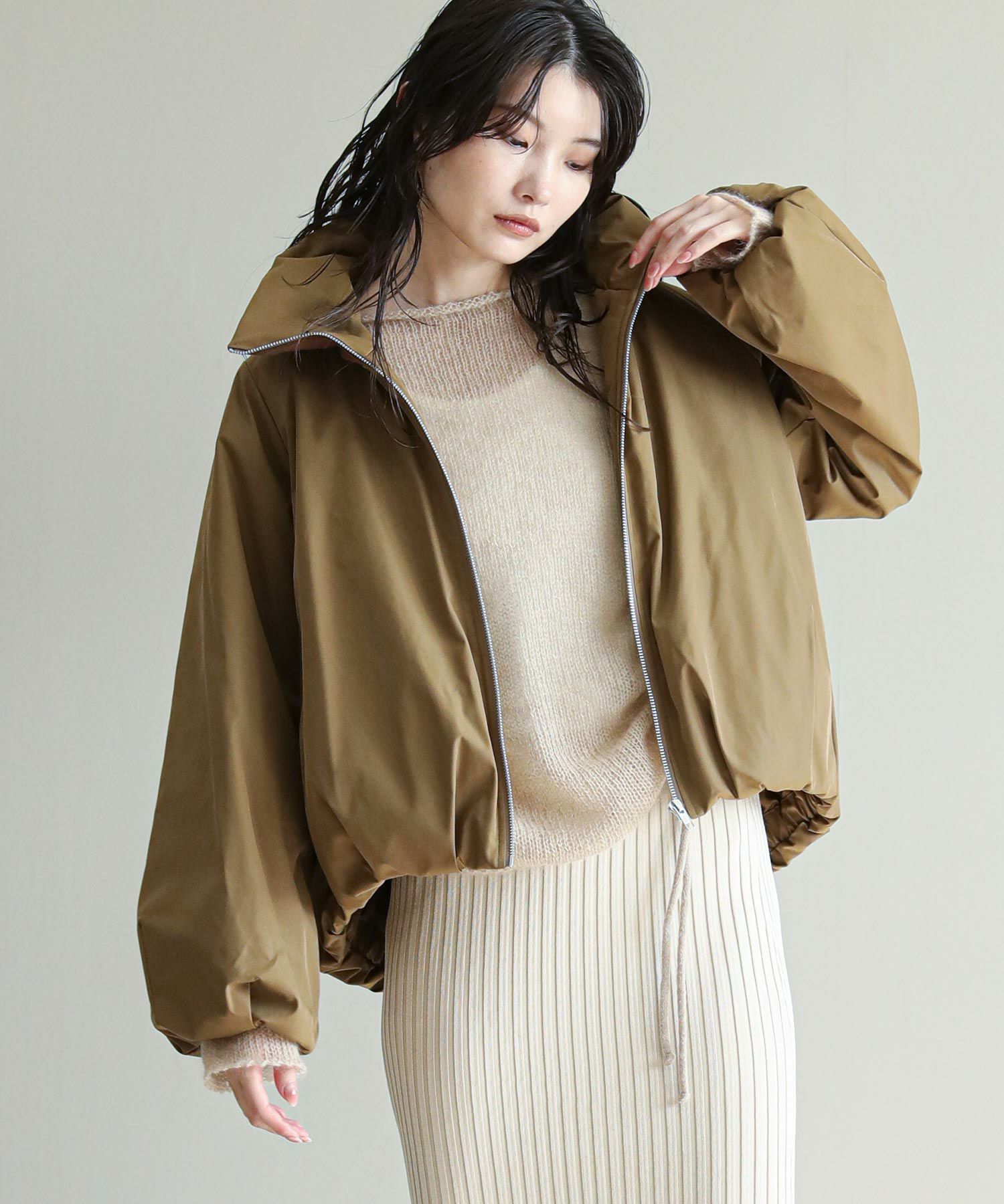 スタンドカラーが顔まわりをすっきりと見せ、凛とした印象を演出します。高めの衿がトレンド感も◎肩から袖にかけての程よいボリュームと、裾のバルーンシルエットが、立体的で洗練されたフォルムを生み出します。ふっくらとした中綿がしっかりと暖かさをキープしながら、着膨れしない絶妙なボリューム感です。