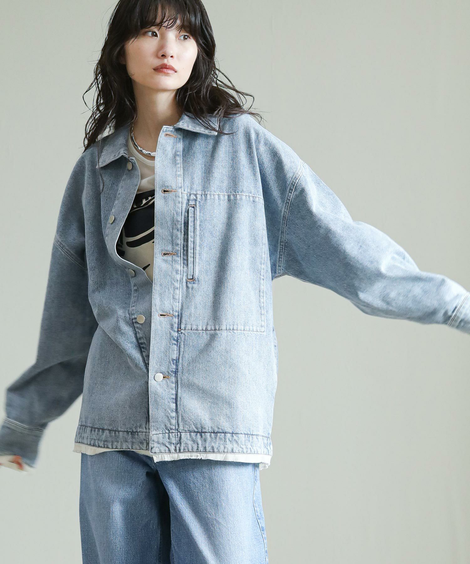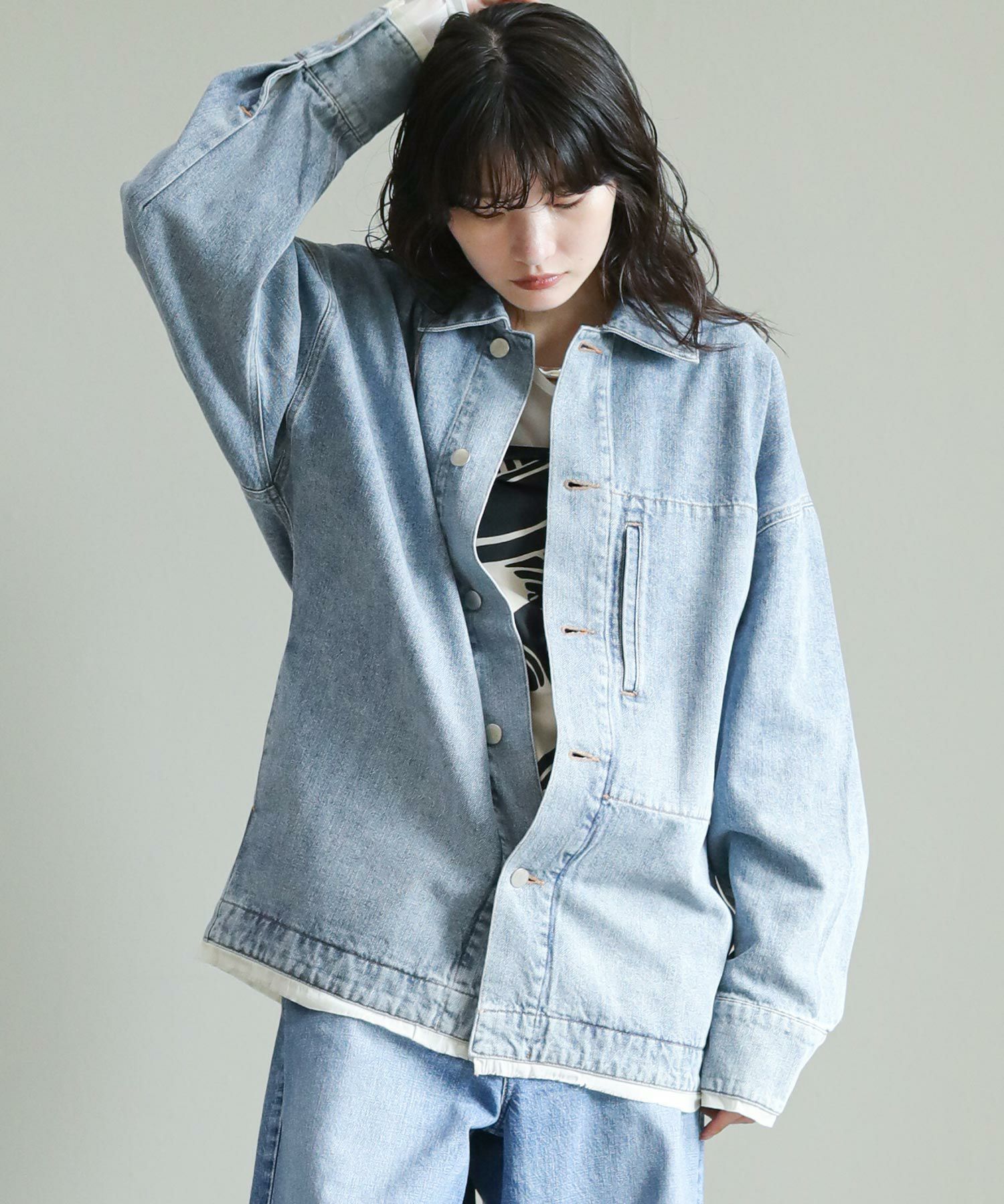 ワークジャケットをベースにオーバーに仕上げたデニムジャケット。