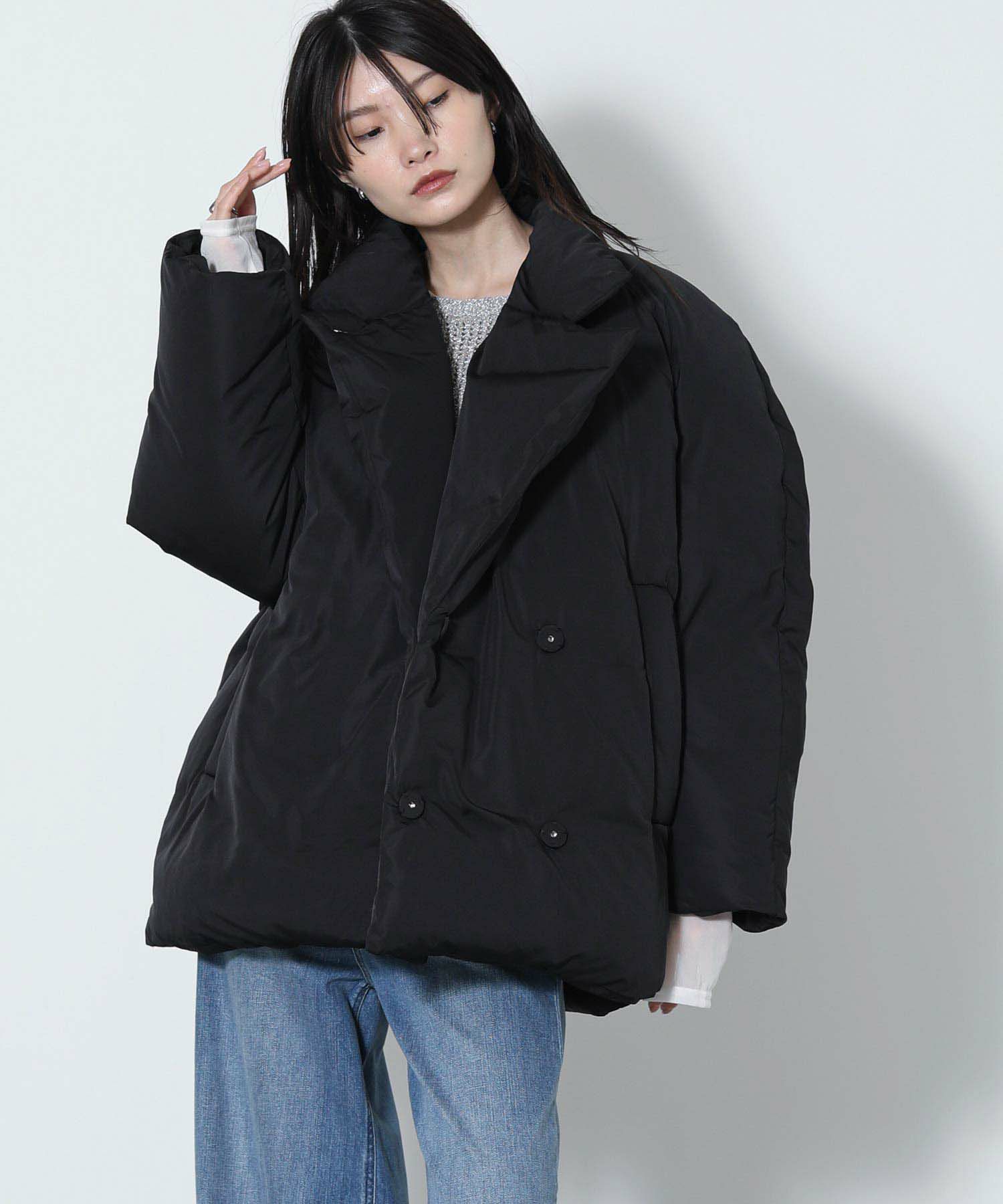カジュアルに見えがちな中綿ジャケットをテーラードシルエットできれいめな印象に仕上げました。