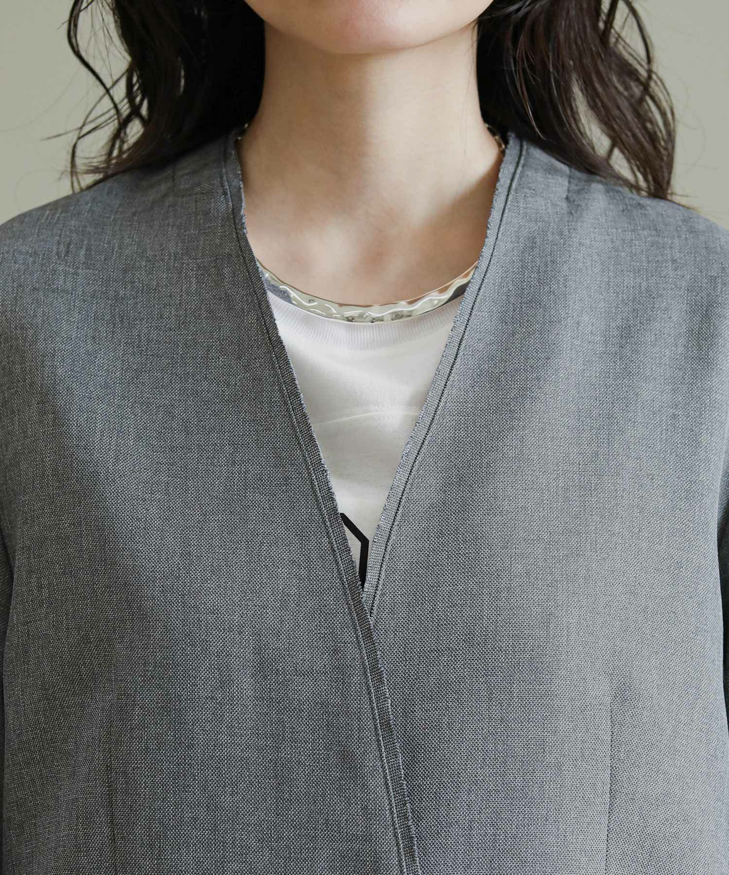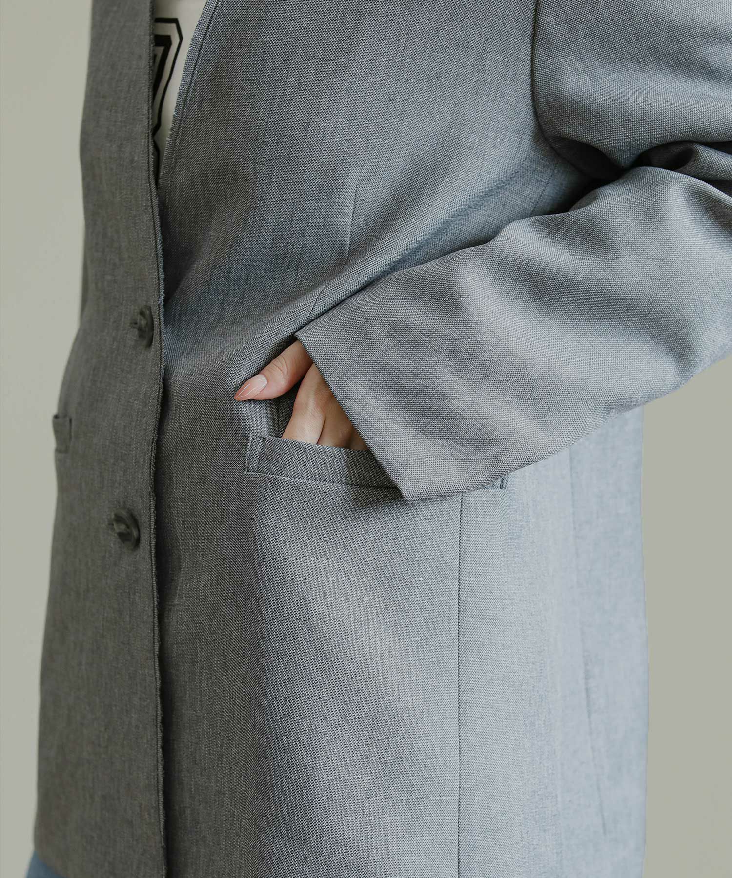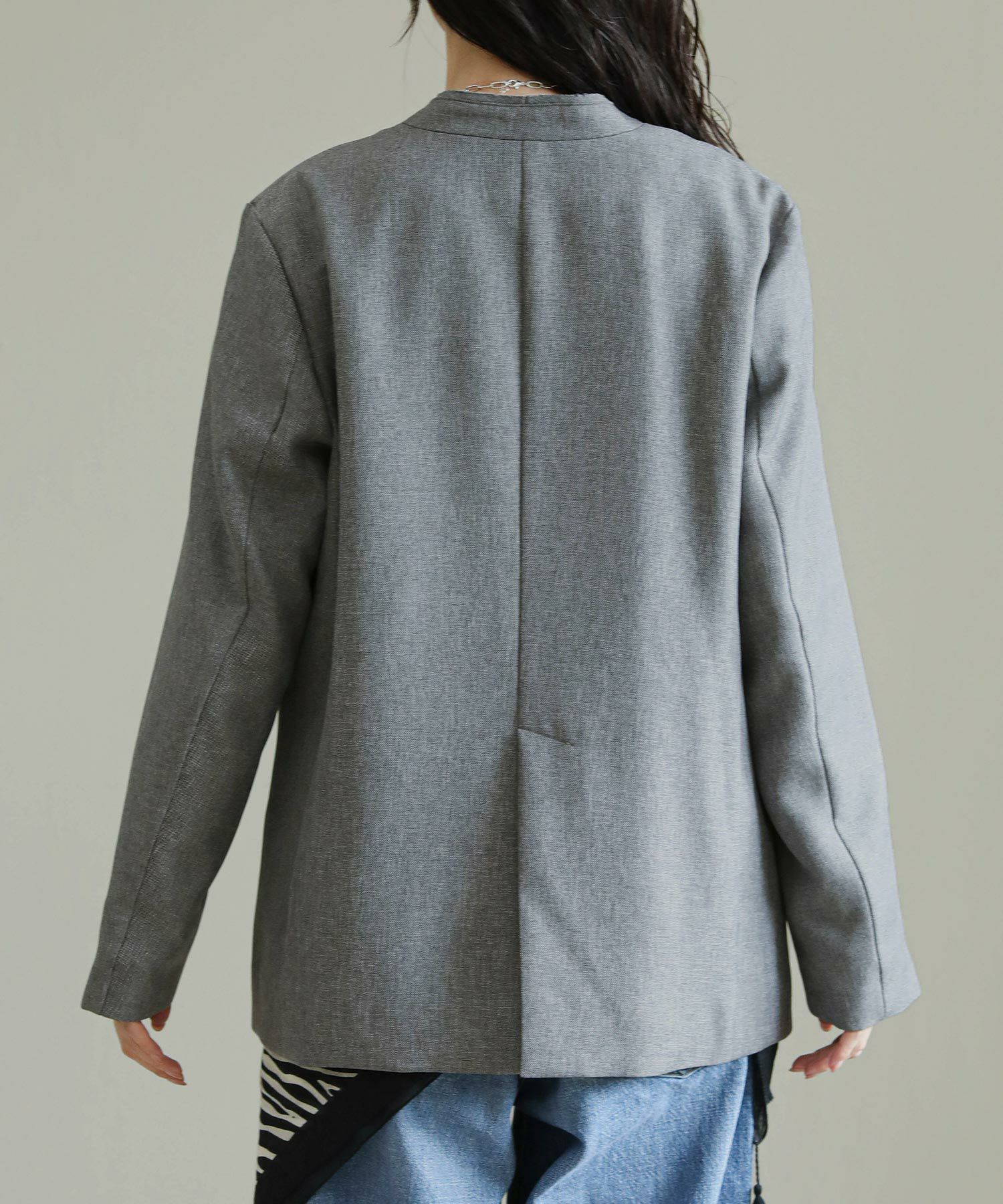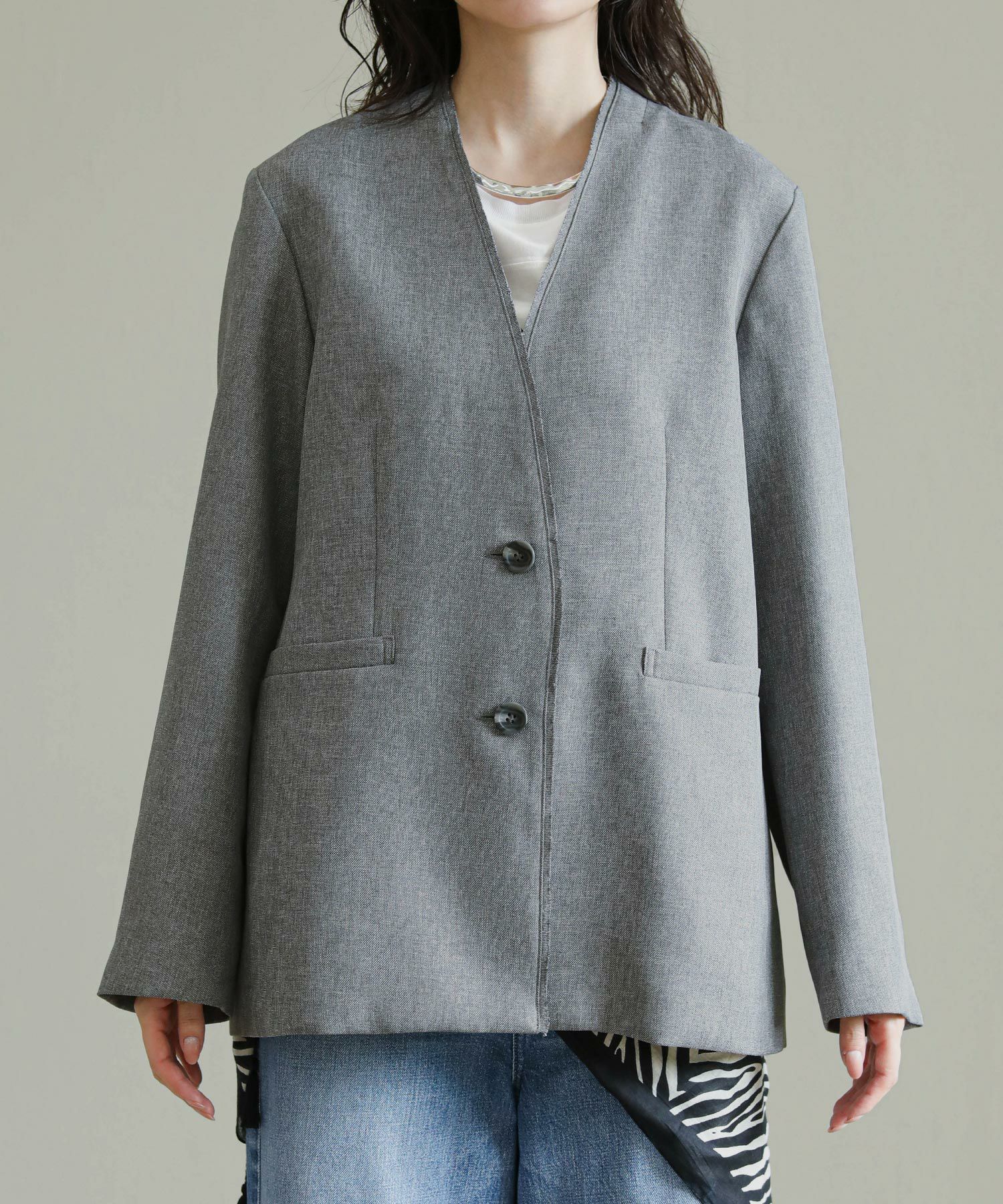ツィード調のクラシカルな雰囲気にカラーレスのモードなデザイン要素が絶妙にマッチした1着。オーバー過ぎず、程よいサイズ感なのでデニムでカジュアルダウンしても、きれいめボトムとお仕事仕様にも、幅広いスタイルをお楽しみいただけます。