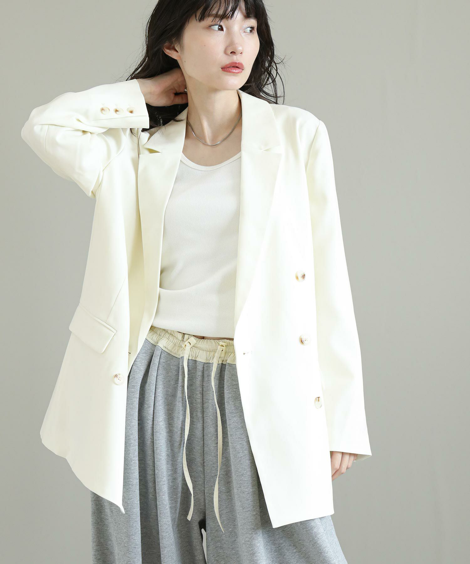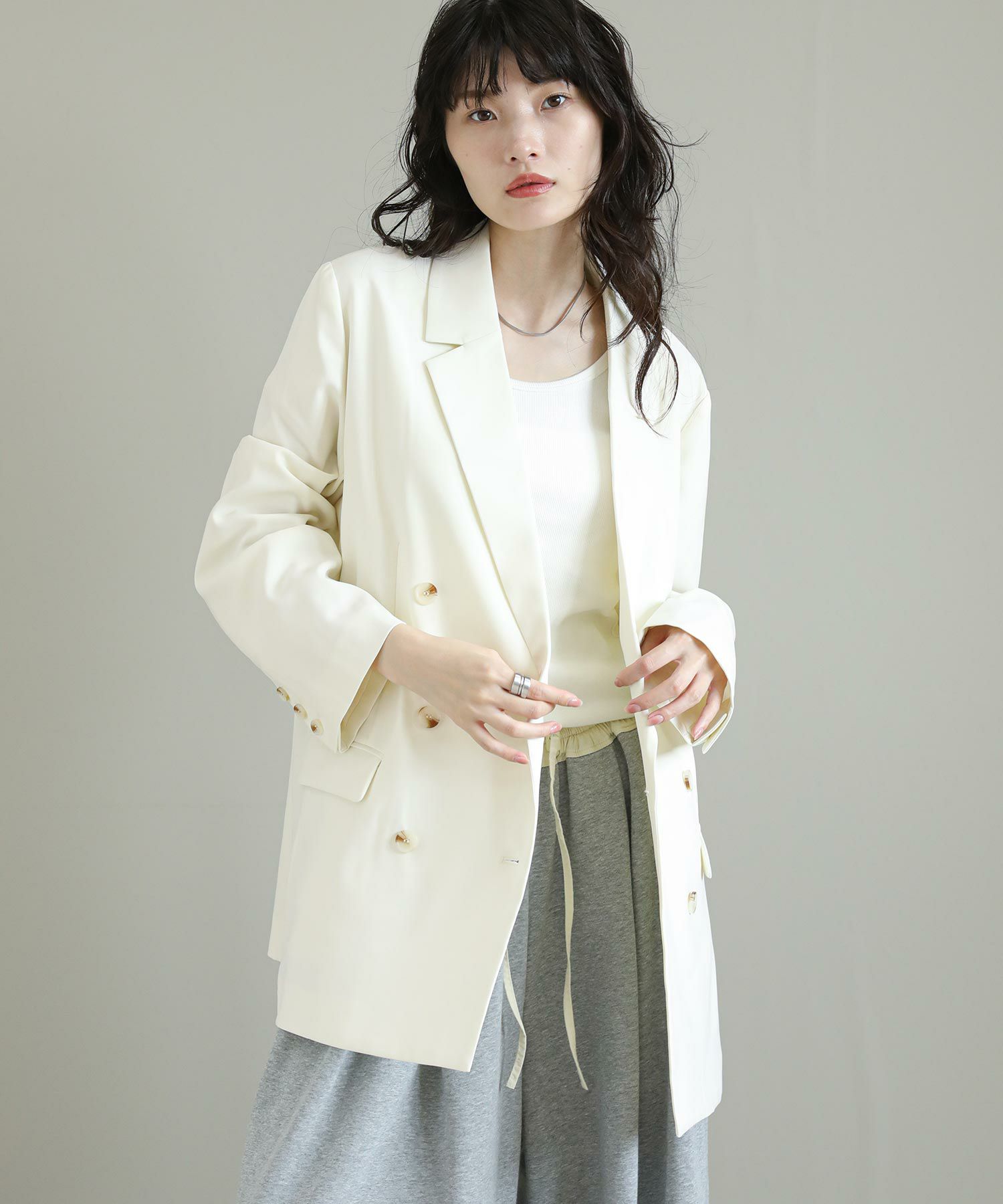 リジョイスの定番ダブルテーラードジャケット。