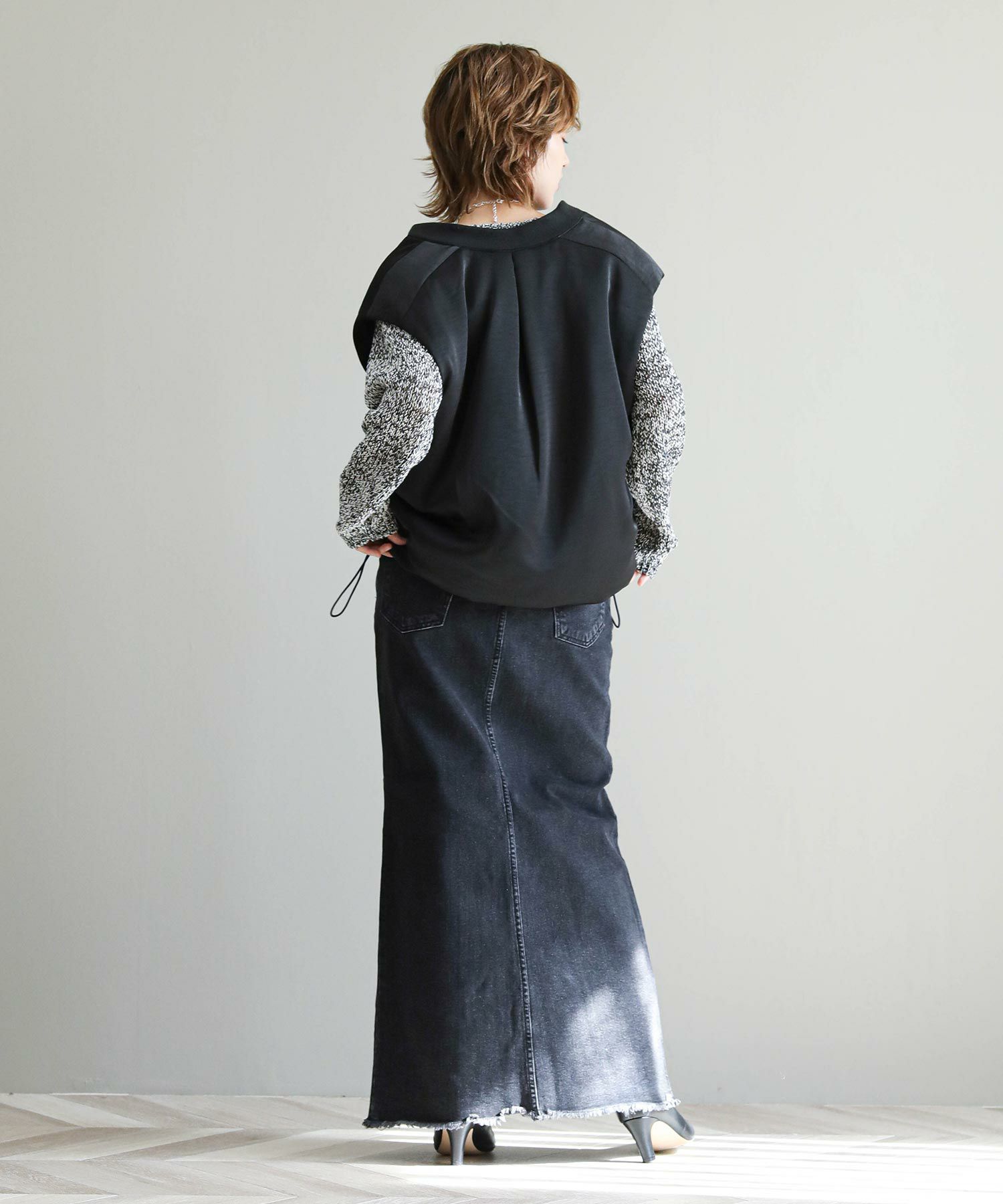 ※着用画像は撮影状況、光の当たり具合で色みが違って見える場合がございます。実際の色みについては、画像一覧の最後に掲載している詳細画像をご参照ください。