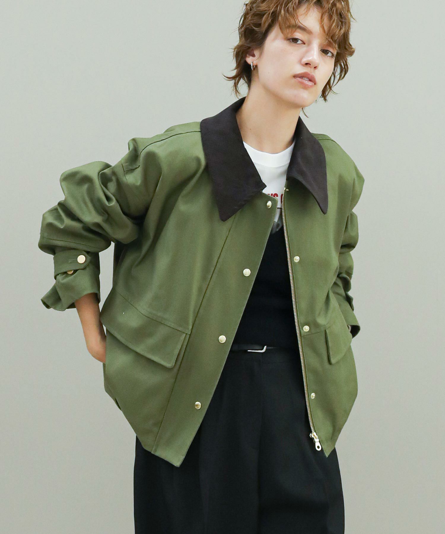品の良さを損なわない、ヴィンテージライクな生地の風合いも魅力的な1着。配色の襟がコーデのアクセントに。スラックスやシャツなど綺麗目なアイテムとも合わせてコーディネートしていただけます。