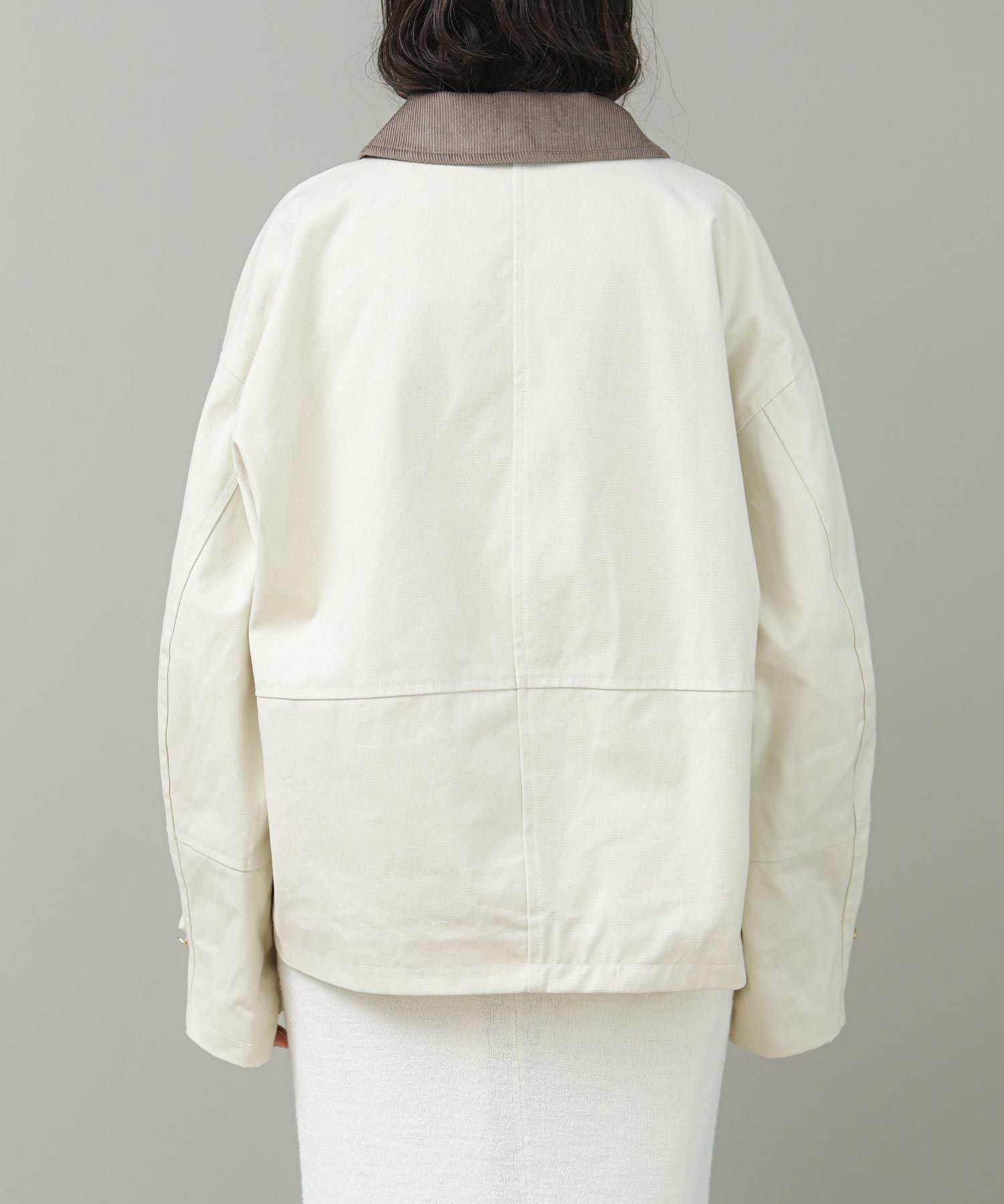 品の良さを損なわない、ヴィンテージライクな生地の風合いも魅力的な1着。配色の襟がコーデのアクセントに。スラックスやシャツなど綺麗目なアイテムとも合わせてコーディネートしていただけます。