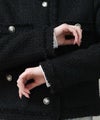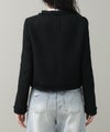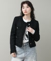 コンパクトなシルエットとブラックのシックな表情がリジョイスらしいアイテムです。普段使いならダメージデニムなどカジュアルボトムとコントラストのあるスタイルがおすすめ。タンクやTシャツにさっと羽織るだけでサマになります。