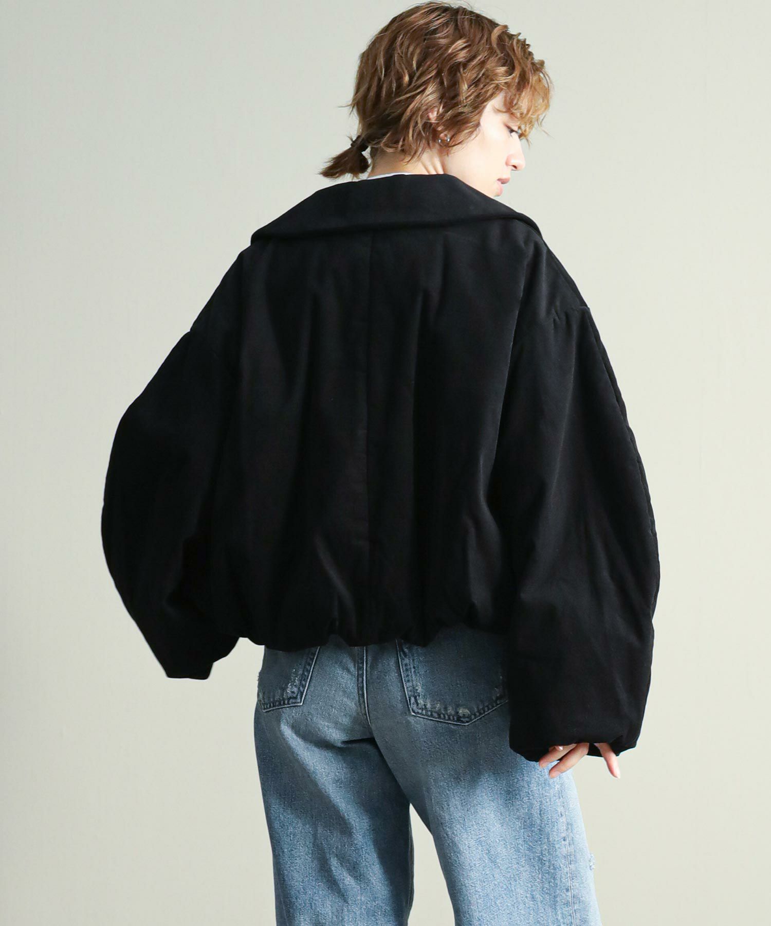 中綿入りなので軽量かつ通気性もありながら保温性にも優れており、気温の下がるこれからの季節にぴったりです。顔まわりを華奢に見せる大きめの襟と、MANOFらしいラウンドした袖のシルエットがポイント。裾と袖口のギャザーがニュアンスあるディテール。比翼仕立てで可愛らしくなりすぎず、大人っぽいスタイリングにマッチするデザインです。ショート丈なのでボリュームのあるワイドパンツやカーゴパンツ、ワンピースにも合わせやすいバランスで、ロングシーズン着用していただける一着です。