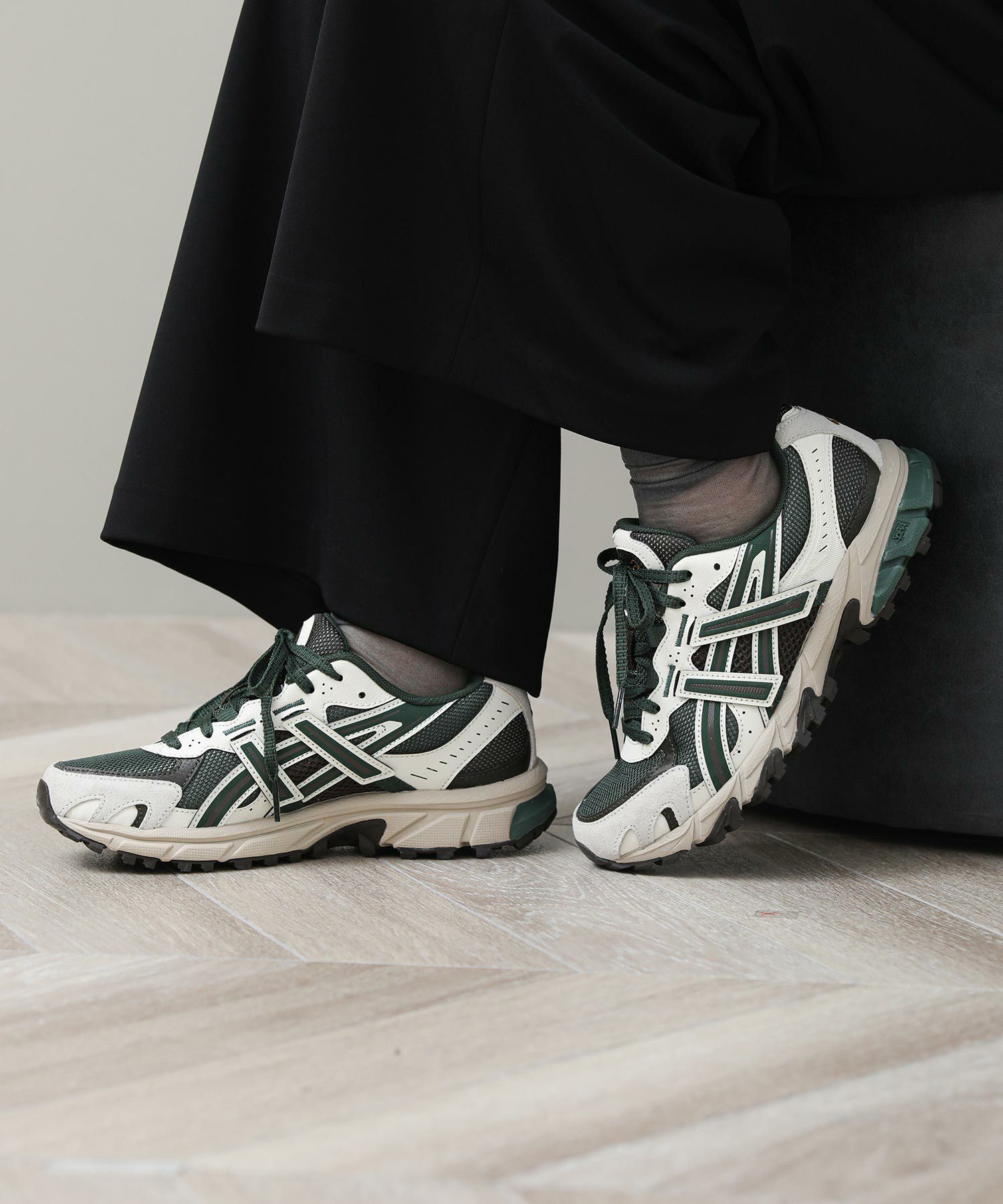 この新しいスタイルは、GEL-KAHANA 6、GELTREKKER、GEL-EAGLETRAILシリーズからデザインのインスピレーションを得ています。ベースとなったモデルたちはもともと競技用のトレイルランナーのために作られたものですが、今回のモデルは日常使いのために改良されています。 ソールはGEL-SONOMAシリーズ2代目までの構造を使用しており、日常使いなどのさまざまな環境で高度なクッション性とグリップ性を生み出します。