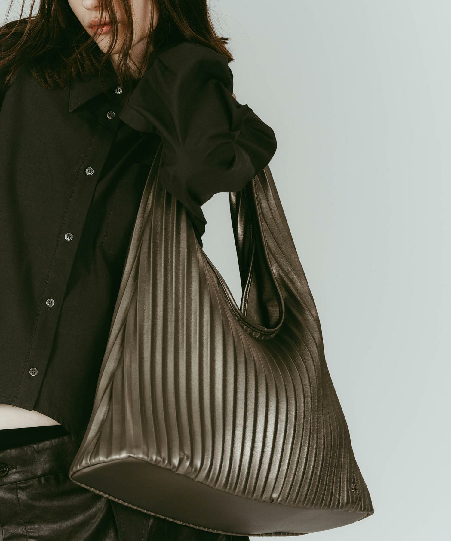 プリーツ加工をした肩掛けバッグ。