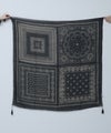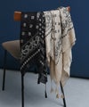 4つのバンダナ柄を組み合わせたユニークなプリント。大判なので、三角にしてもそのまま大きく巻いても、しっかり存在感がでます。動くと揺れる小さなタッセルがアクセントに。