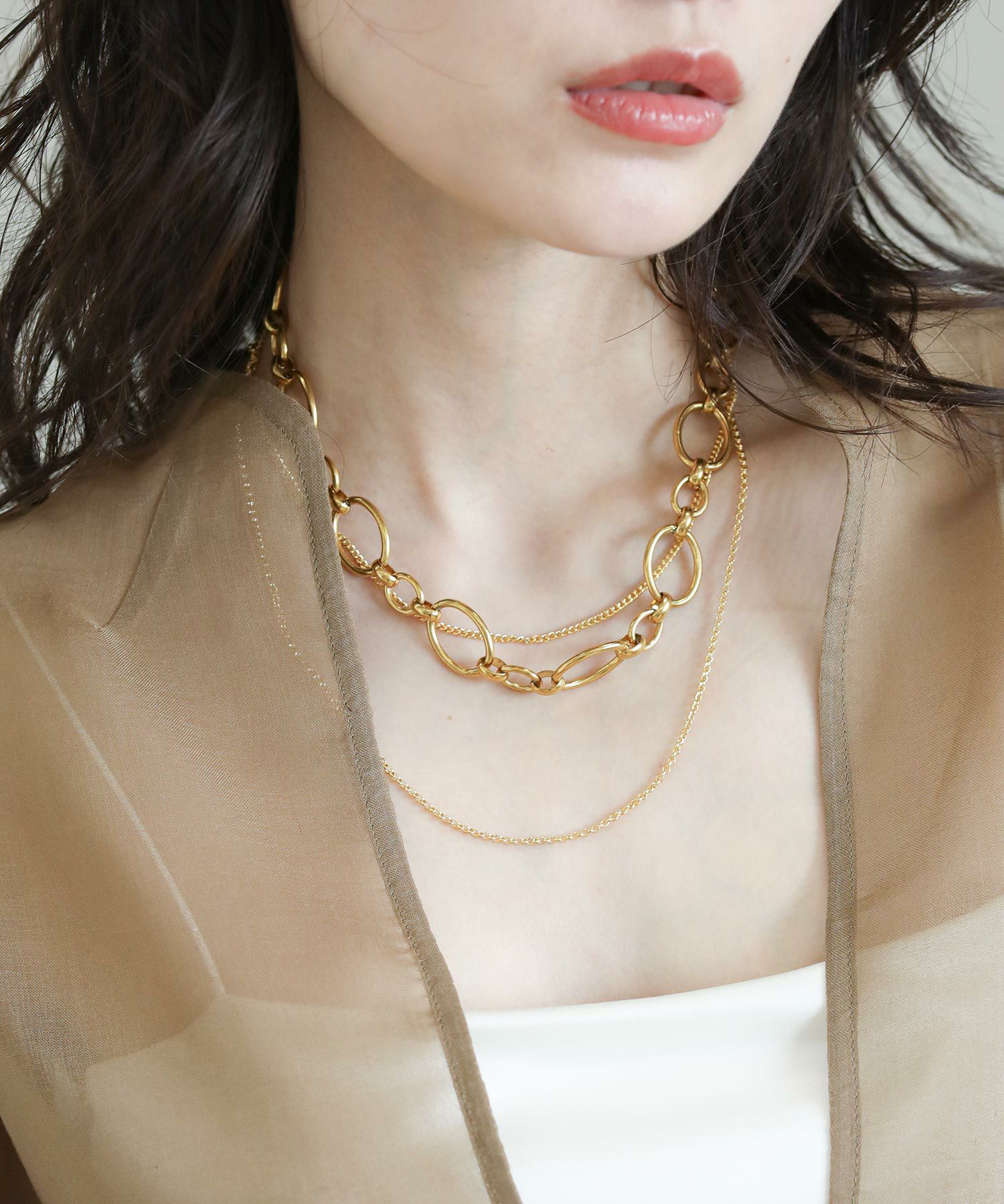 シンプルなスタイリングに程よい存在感を添えるチェーンネックレスが登場。丸みのある大小のチェーンが女性らしさを忘れないバランスの良いデザインです。重厚感を持たせつつも軽やかな着け心地を実現。セミマットな質感でコーデに上品さをプラスしてくます。 【Erin & Emma /エリンアンドエマ】 NYとTOKYO2つの都市が生み出すアクセサリーブランド。