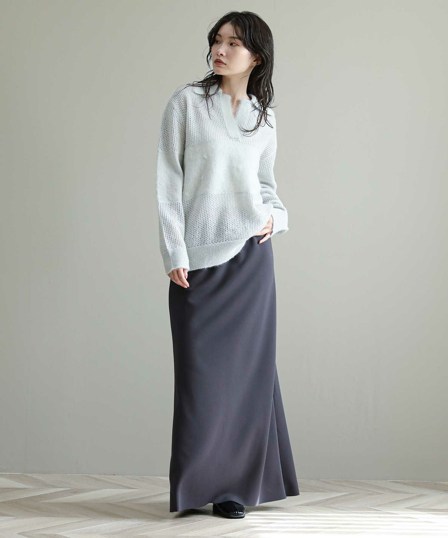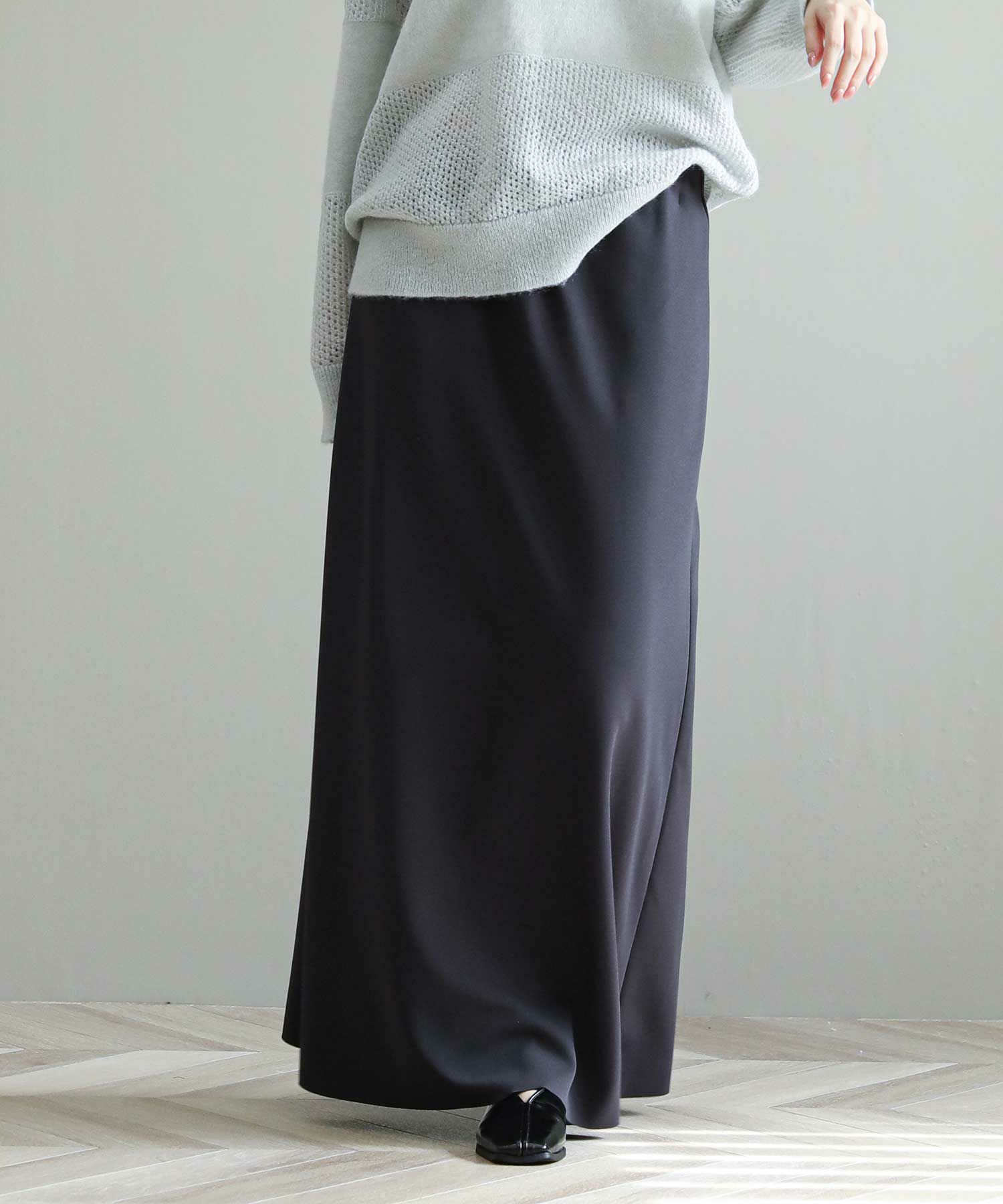 スタイルアップ効果抜群のマキシスカート。