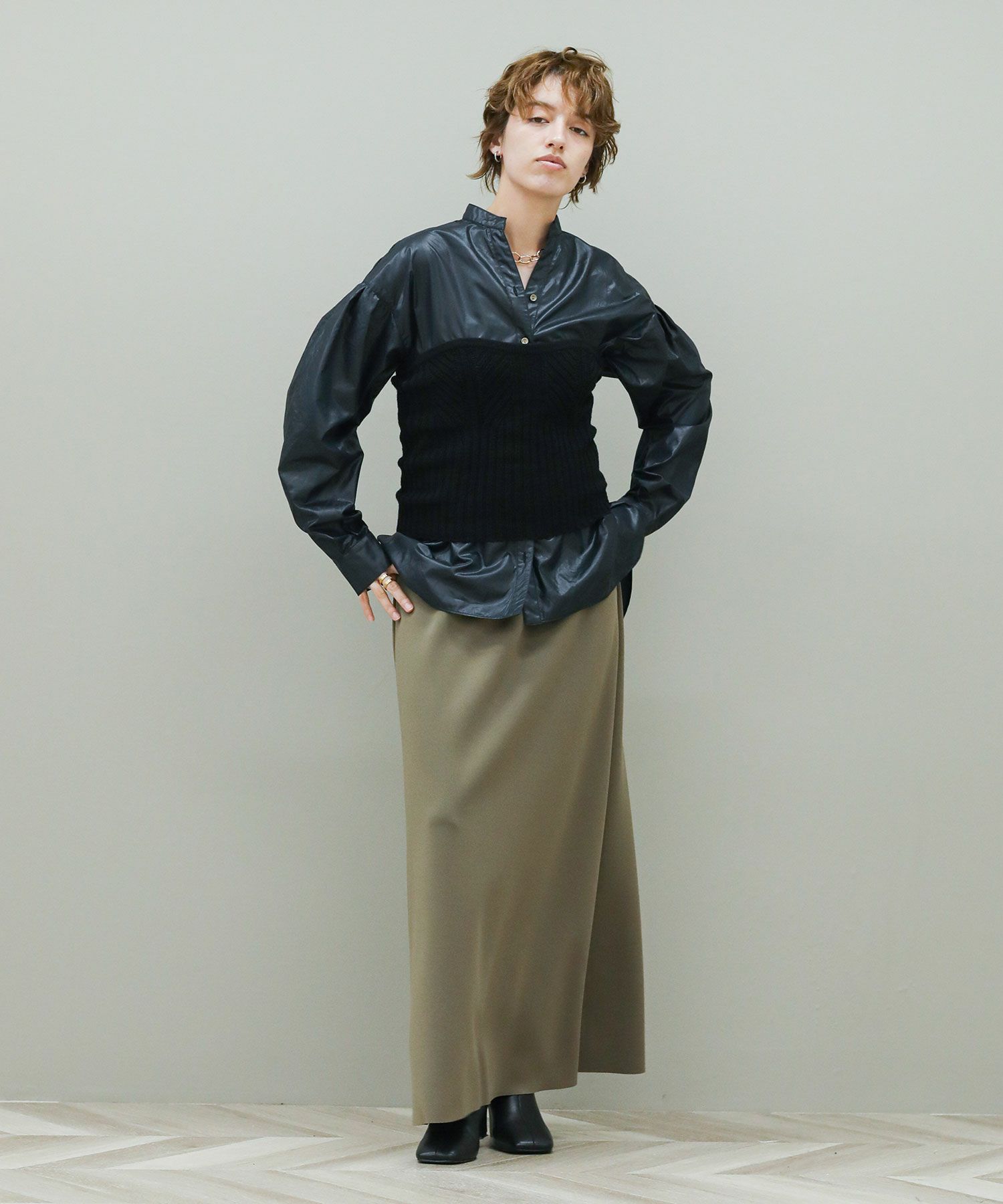 ※着用画像は撮影状況、光の当たり具合で色みが違って見える場合がございます。実際の色みについては、画像一覧の最後に掲載している詳細画像をご参照ください。