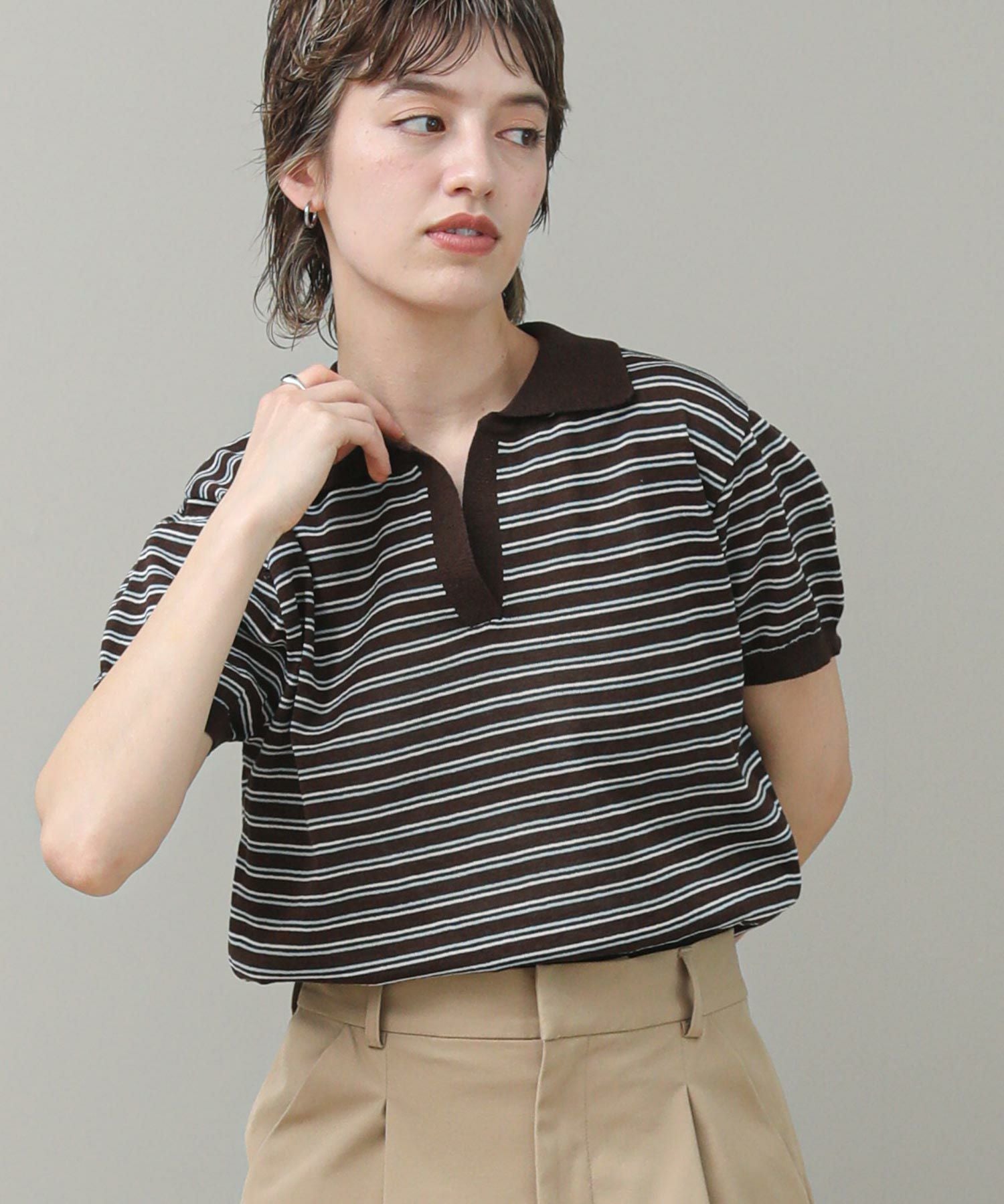 ポロカラーとコンパクトなシルエットがトレンド感のある1着です。軽やかな素材感で盛夏でもストレスなく着ていただけます。ワイドパンツやデニムでメンズライクな着こなしもおすすめ。