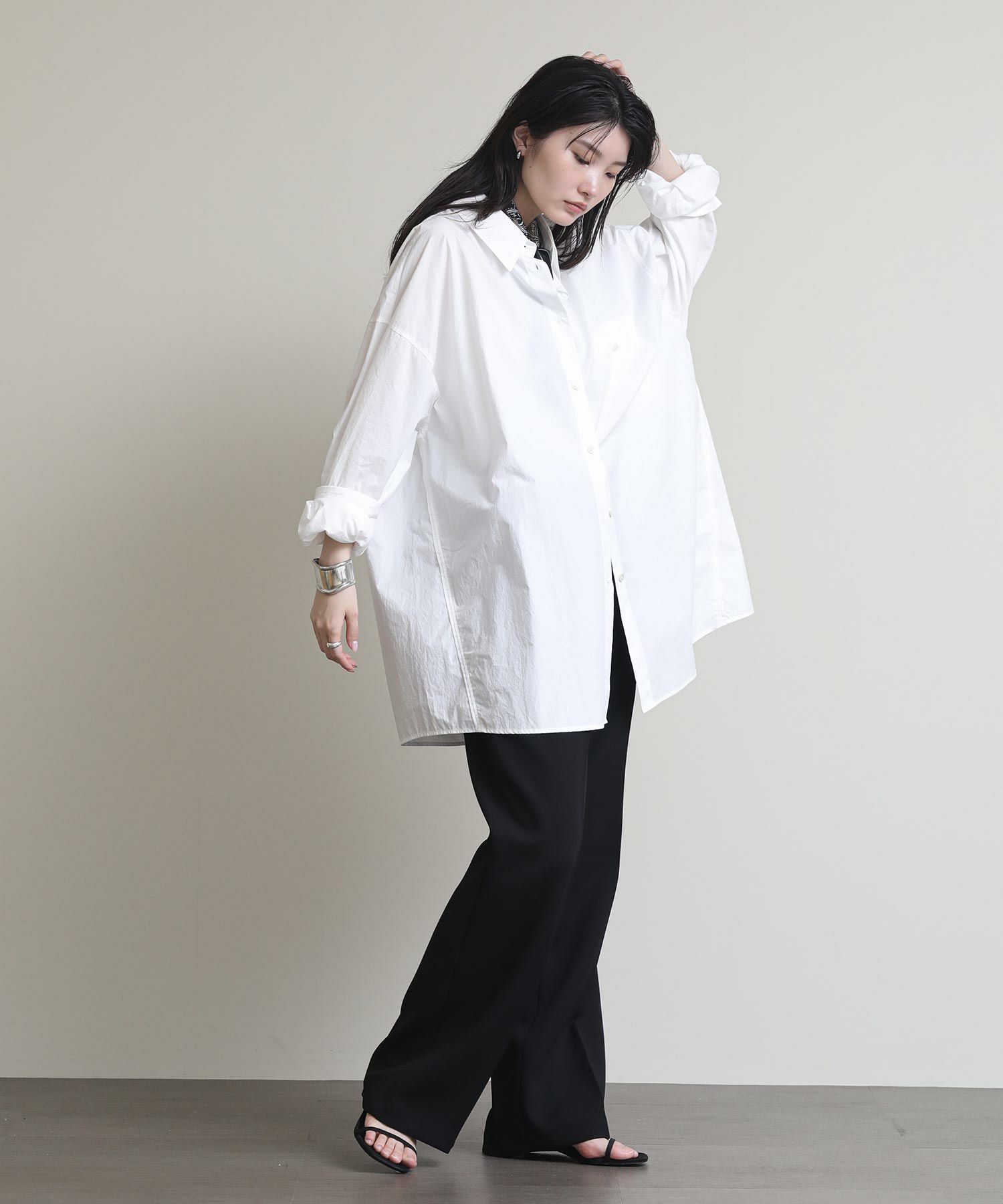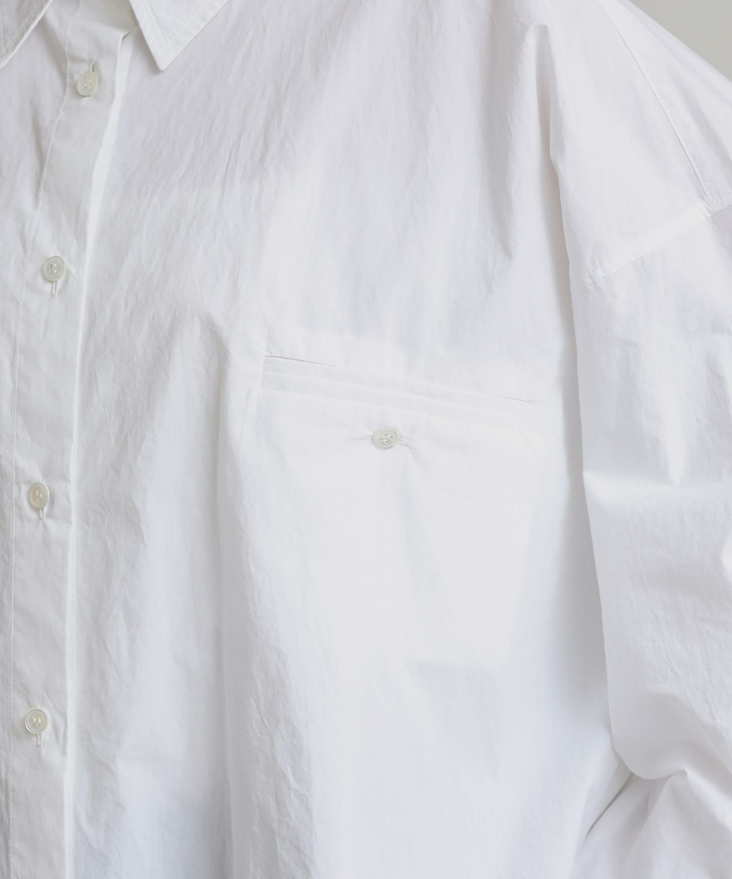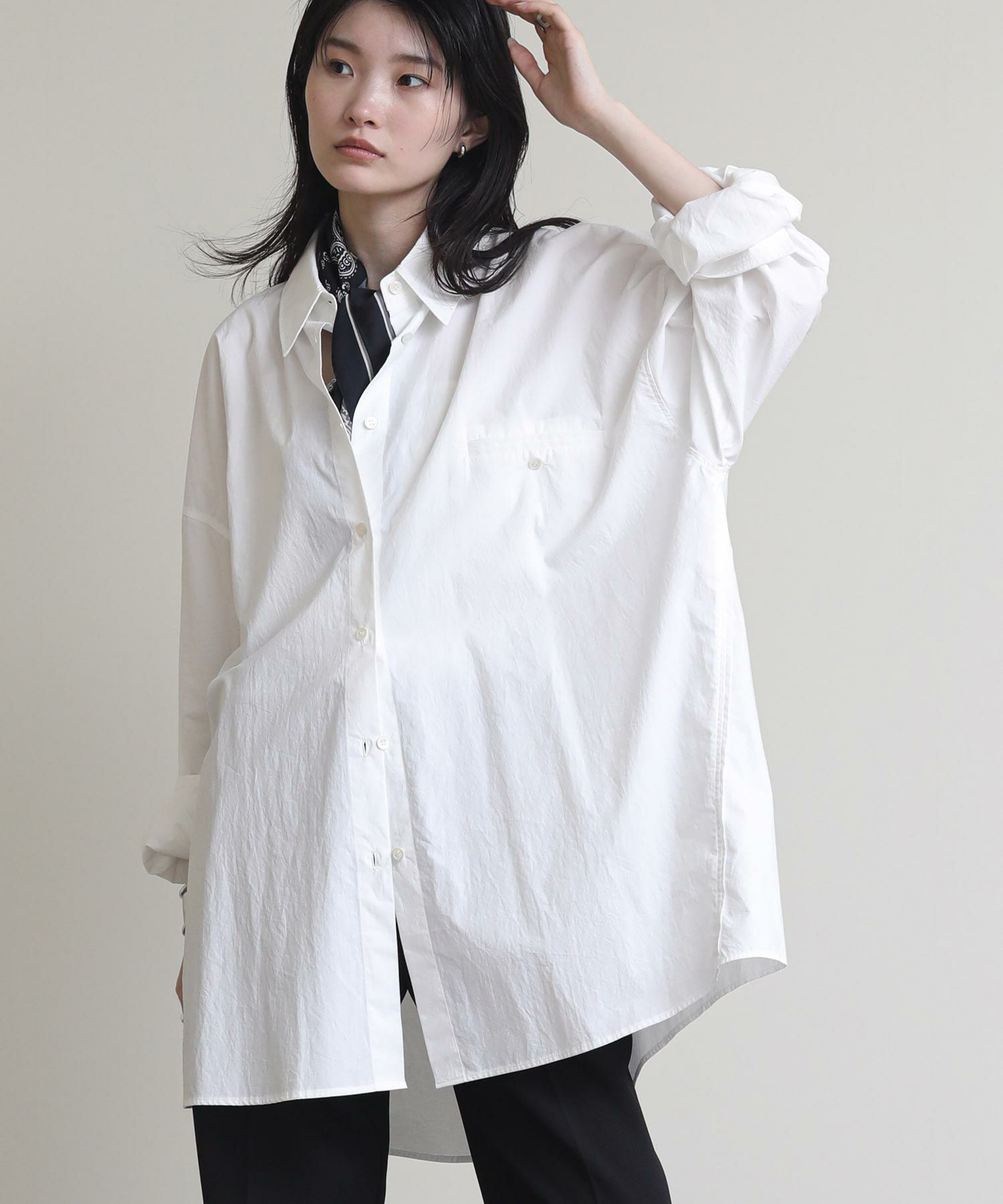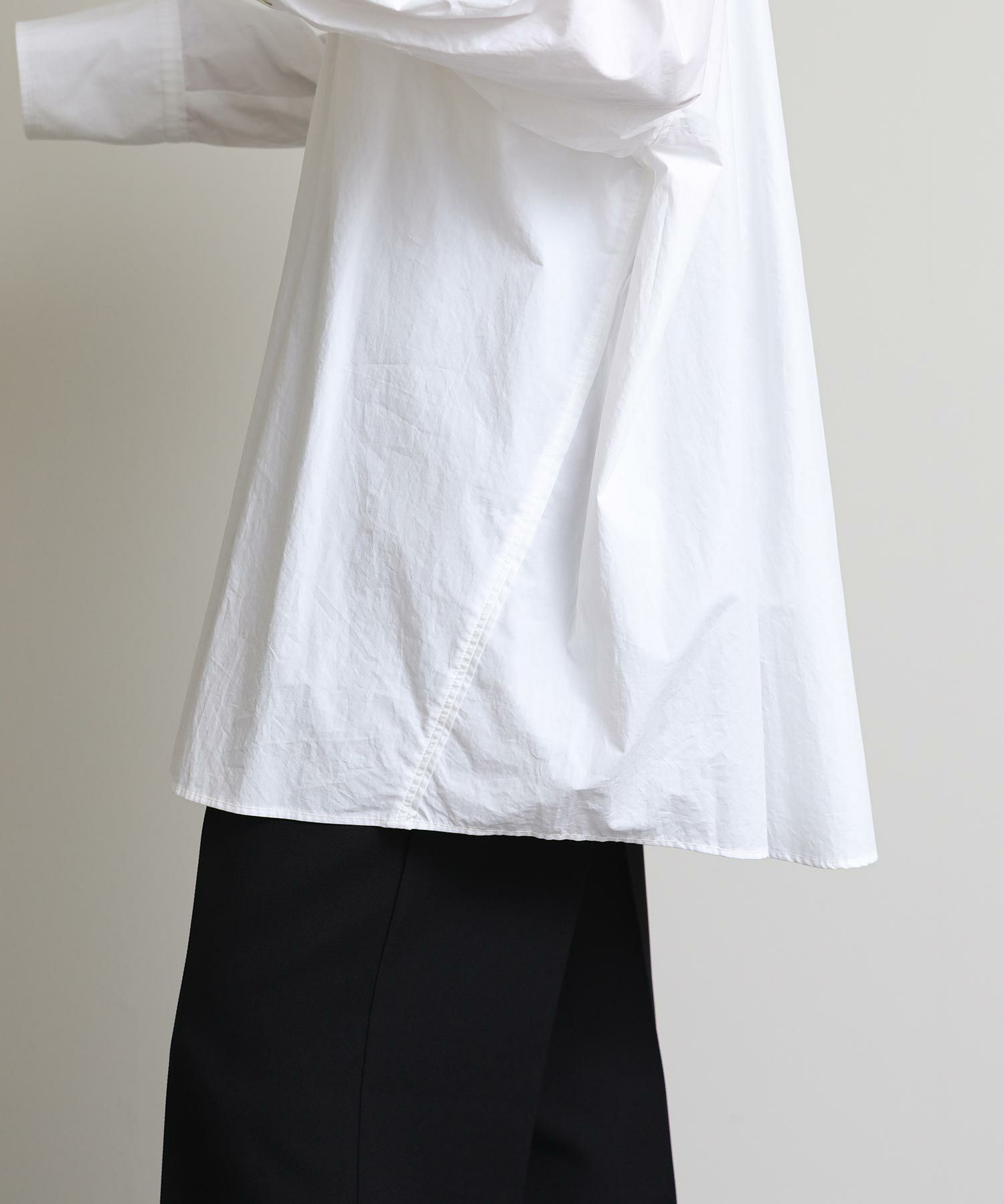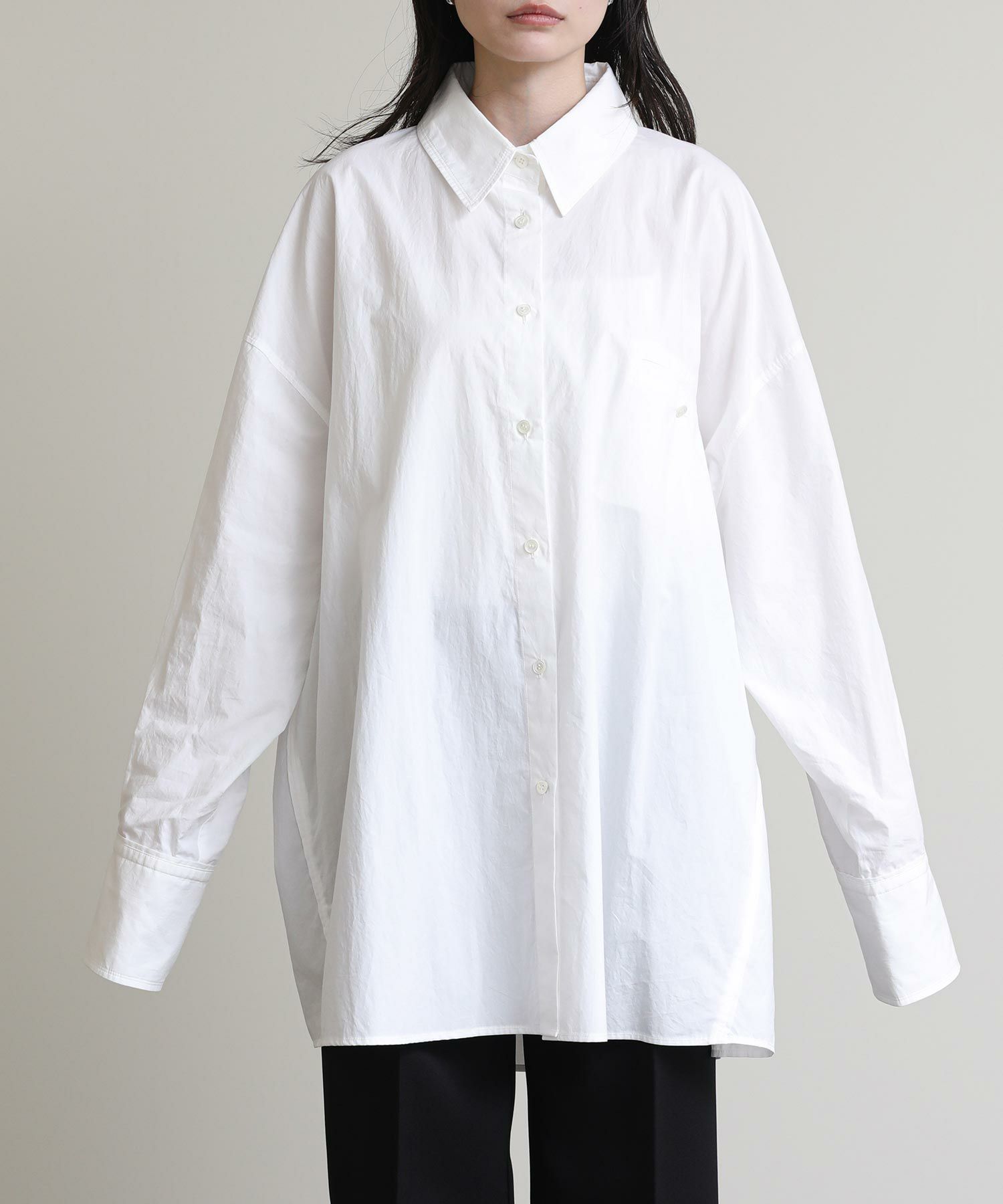 その名の通り、極端にオーバーサイズで作成したスタイルに抜けを加えるメンズライクなシャツ。
