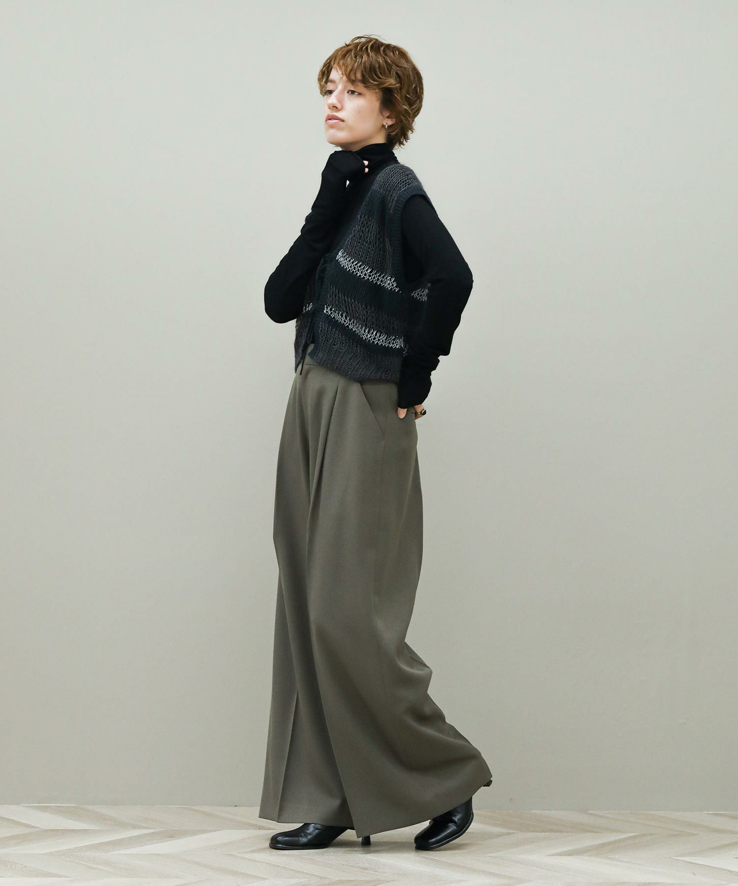 ※着用画像は撮影状況、光の当たり具合で色みが違って見える場合がございます。実際の色みについては、画像一覧の最後に掲載している詳細画像をご参照ください。