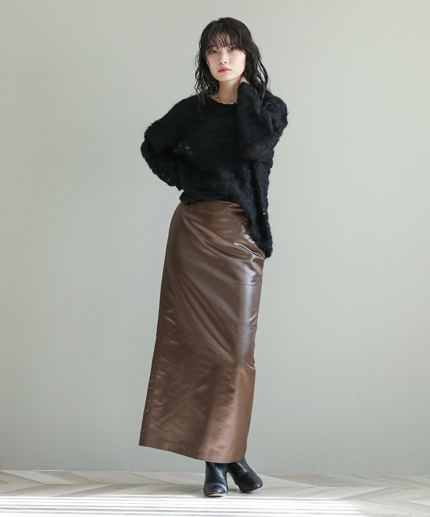 糸の繊細さやループ感を引き立てるためにざっくりとシアー感のある編地に仕上げています。ゆったりとしたサイジングに仕上げているので、シアー感を活かしたレイヤードスタイルを楽しんでいただけます。