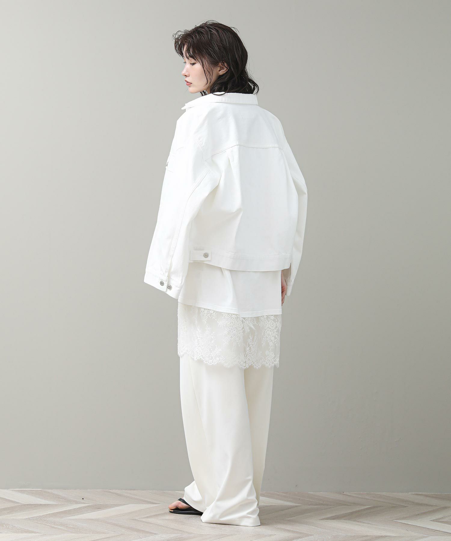 す。甘くなりがちなレースを大人の女性が着てもかっこよく着られるアイテムです。前後のロゴでバックスタイルも決まります。