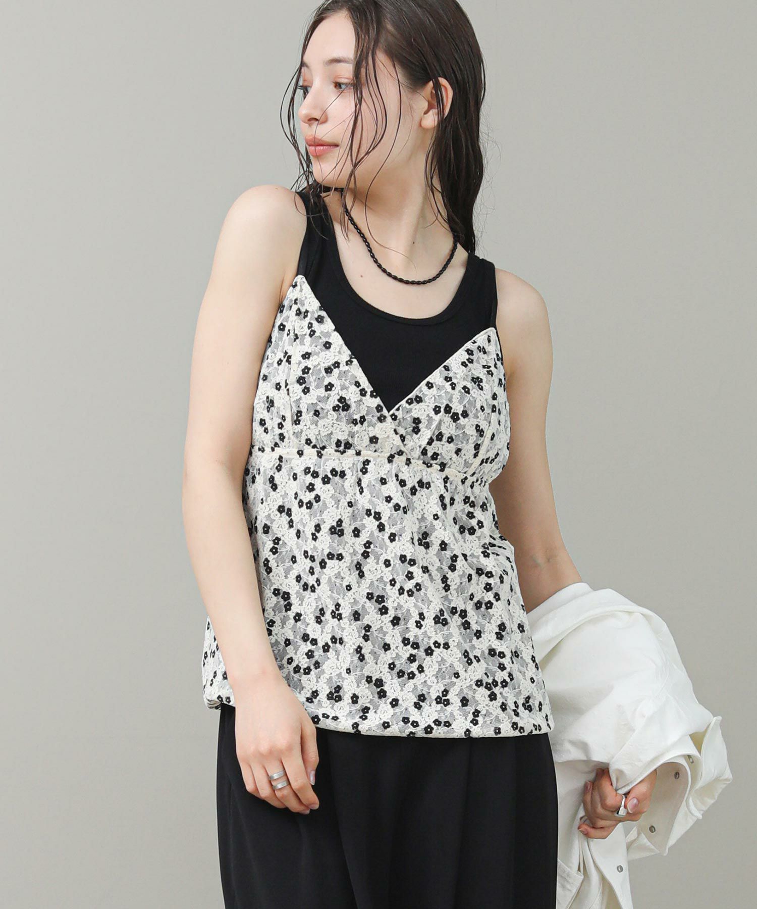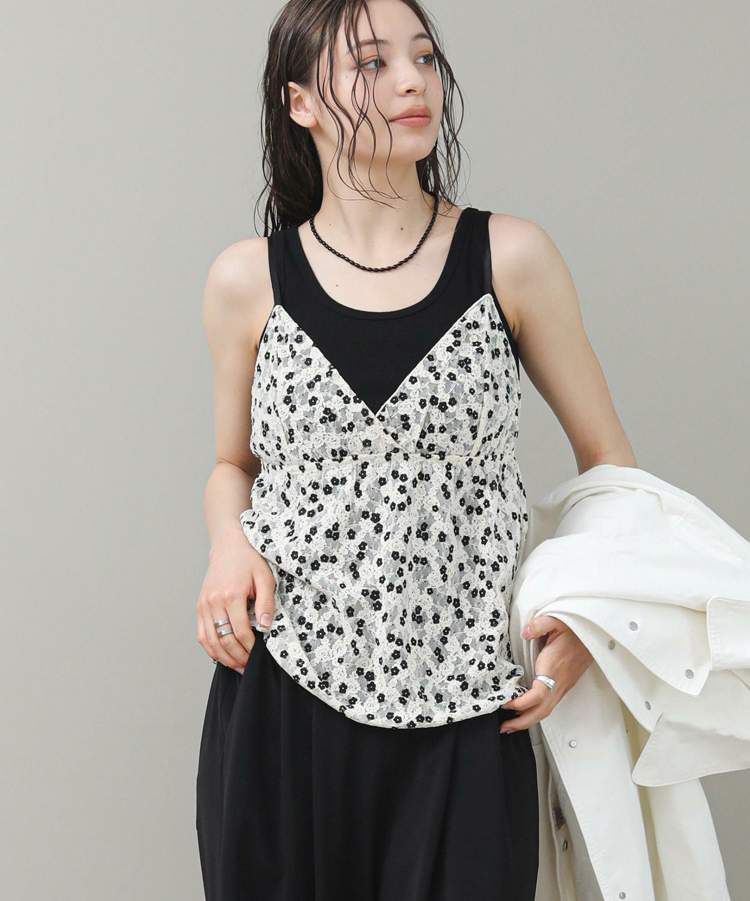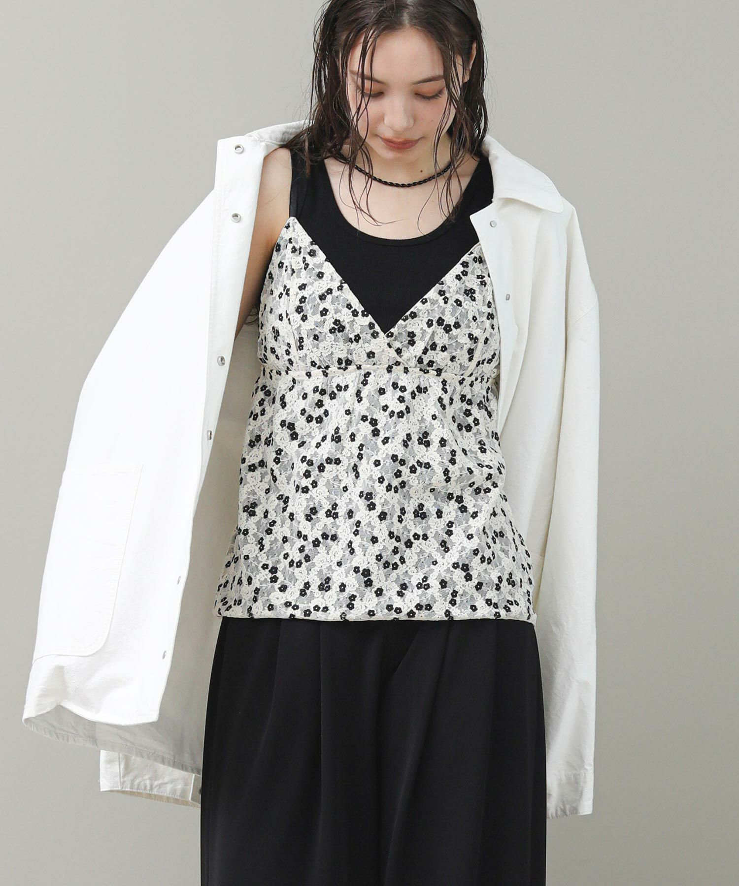 トレンドのレースもprovokeらしい個性がプラされた1着です。ジャケットのインナーや、ニットやTシャツとレイヤードするのもおすすめ。寒い時期から春の気分を楽しめるアイテムです。