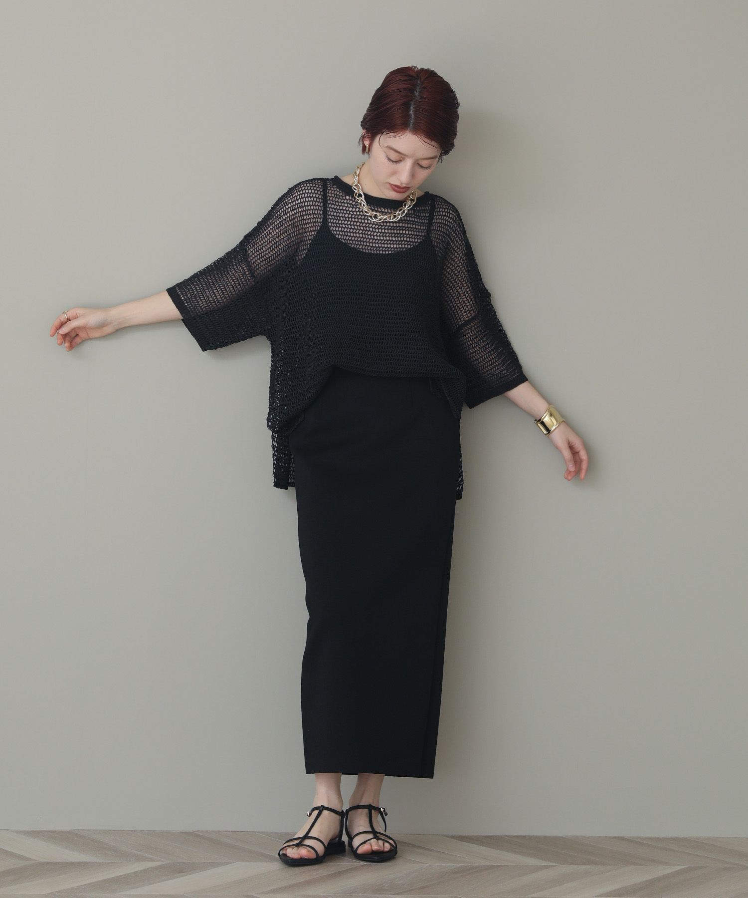 大人のヘルシーな肌見せが叶うアイテムです。タンクトップやキャミソールと合わせてるのはもちろん、ロゴTシャツとレイヤードするのもおすすめ。程良いオーバーサイズ感で華奢見え効果も◎