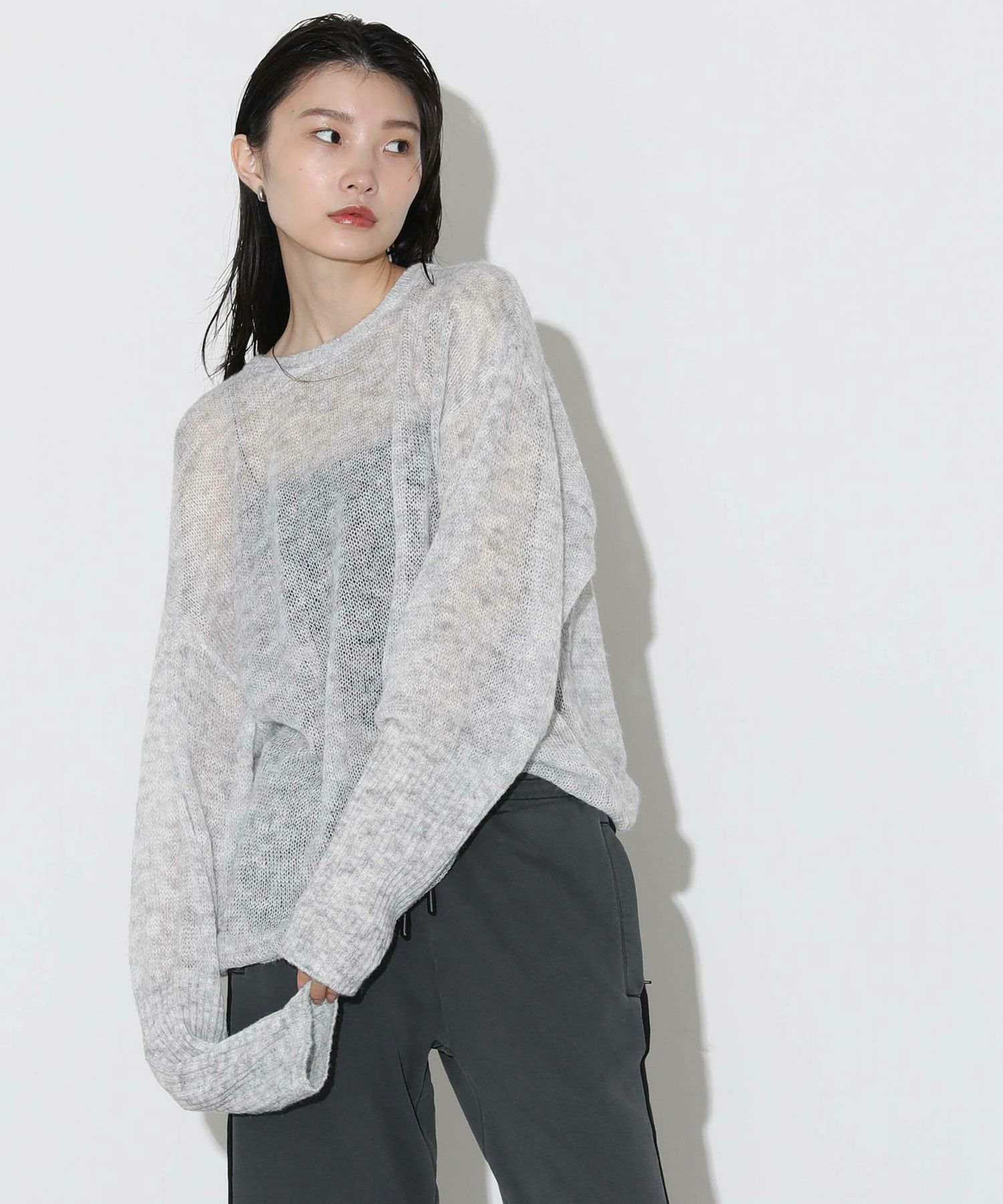 1枚でこなれた雰囲気に。マーブル調の色味もアクセントになります。キャミやタンクとシアーコーデもおすすめ。袖が長く設定されているのでジャケットやシャツから袖をずるっと出すのも抜け感がでてGOOD。ロンT感覚で着られる万能な1枚です。