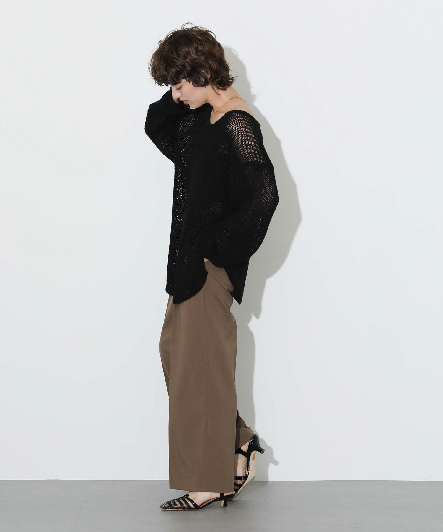 s.ボートネックメッシュニット