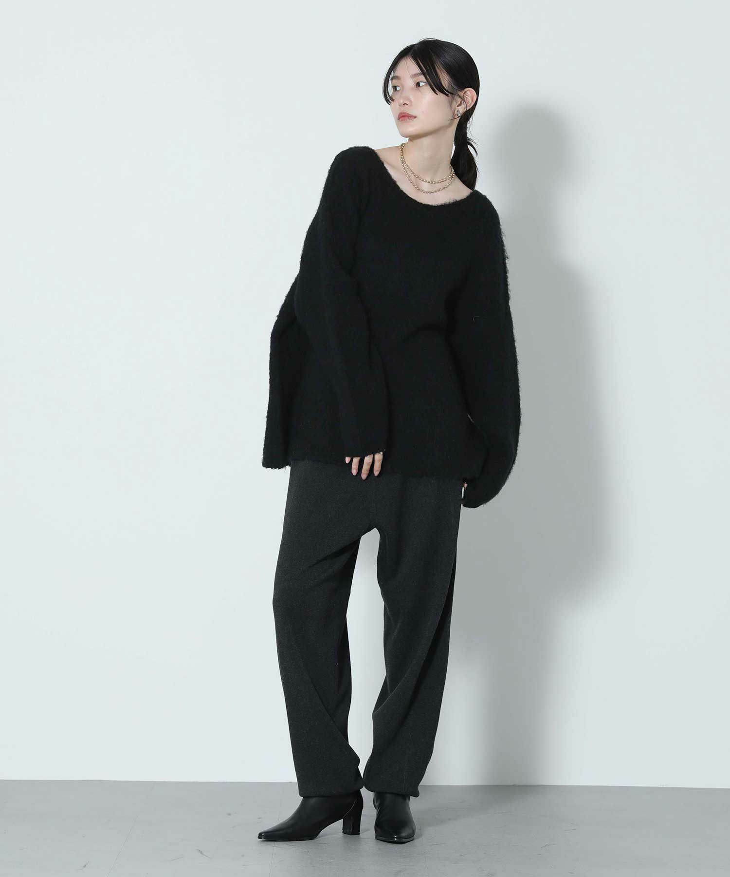 オーバーなサイジングとモヘヤの風合いが今年らしいニットプルオーバー。
