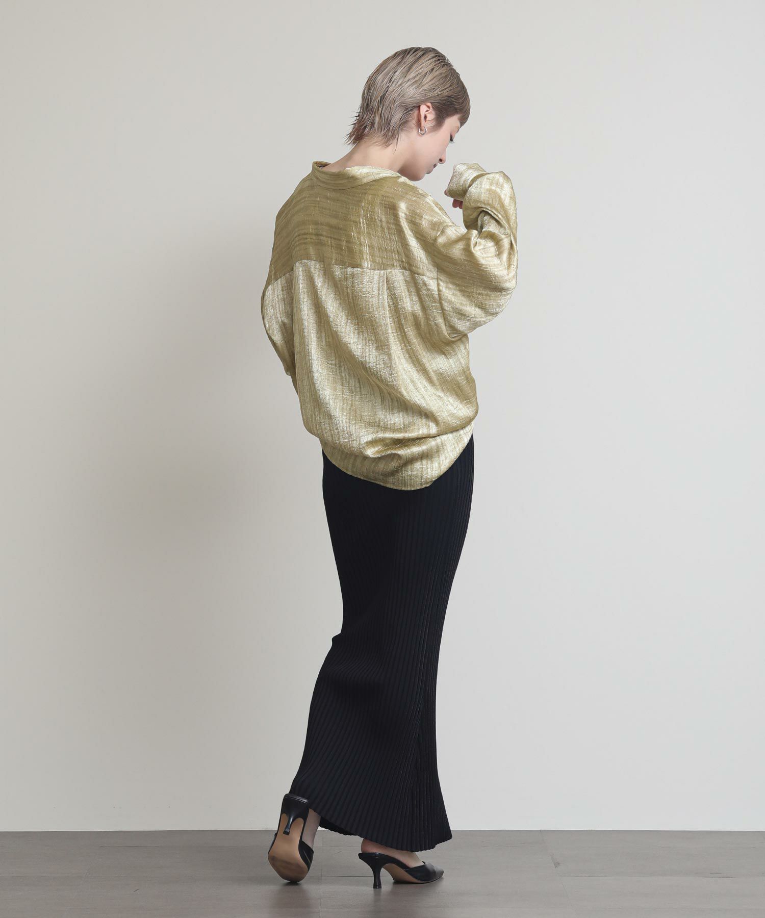 自然なシワ加工を施したワッシャーサテンシャツ。