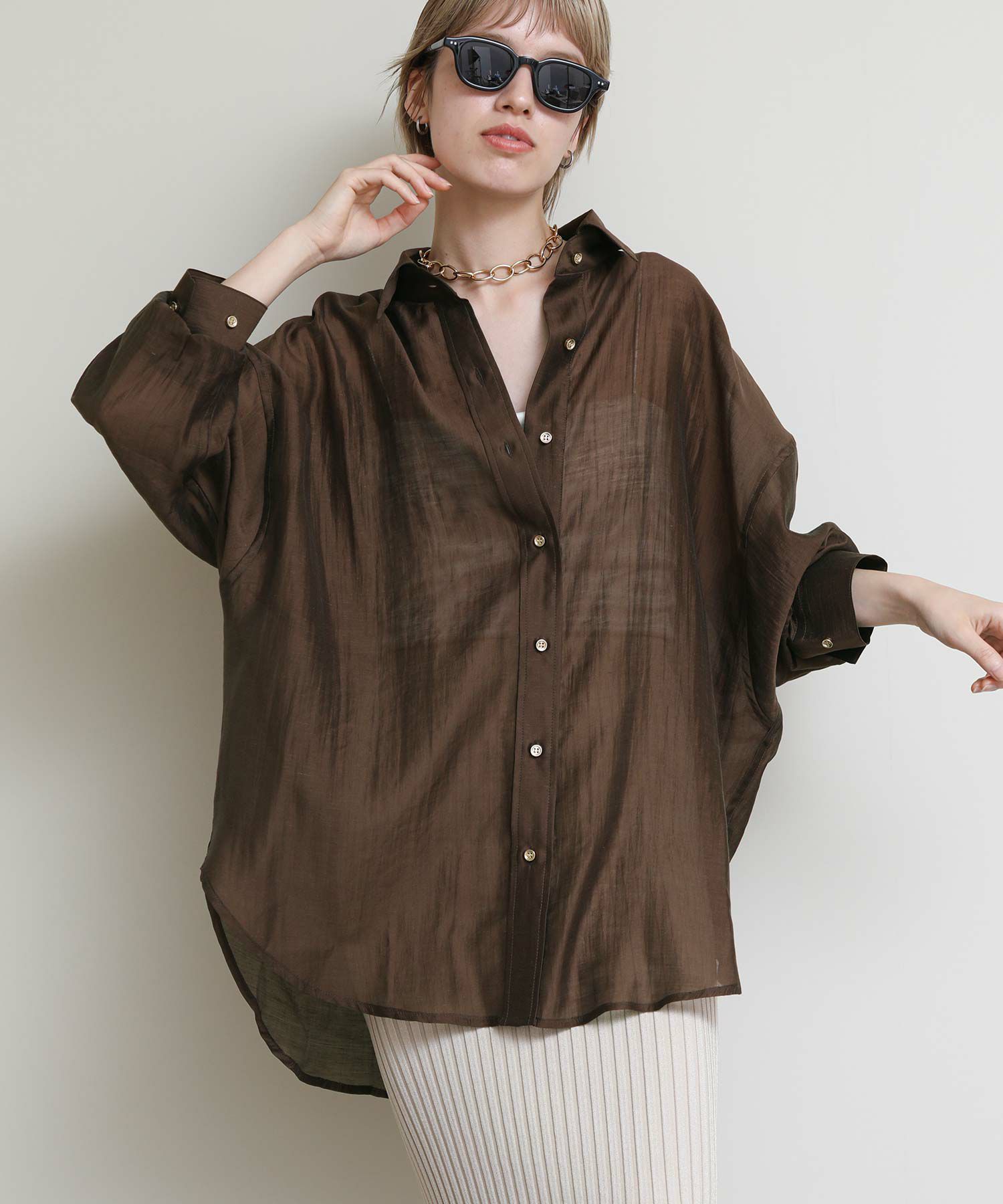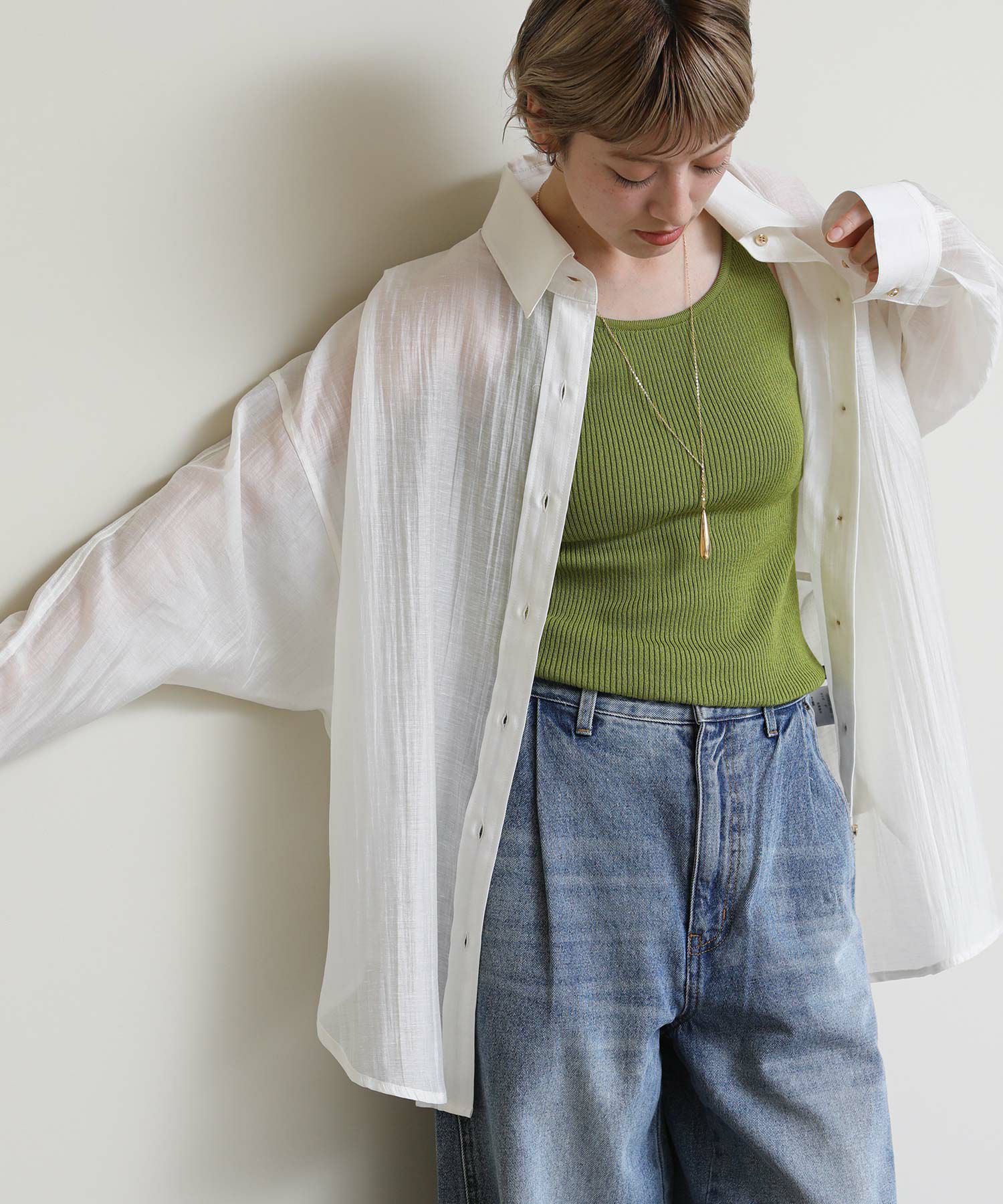 程よいシアー感がトレンドライクでさっと羽織るだけ