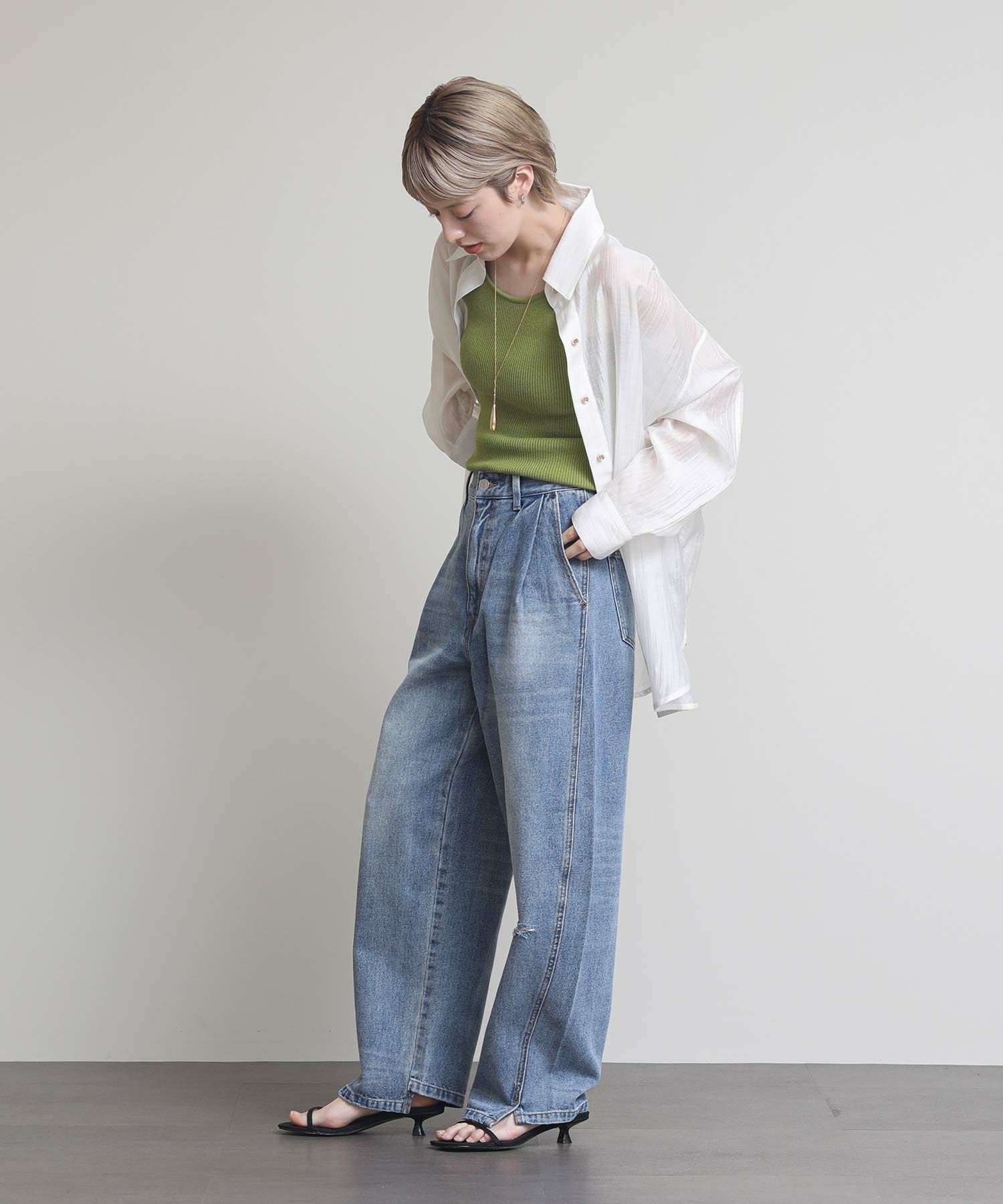 ※着用画像は撮影状況、光の当たり具合で色みが違って見える場合がございます。実際の色みについては、画像一覧の最後に掲載している詳細画像をご参照ください。