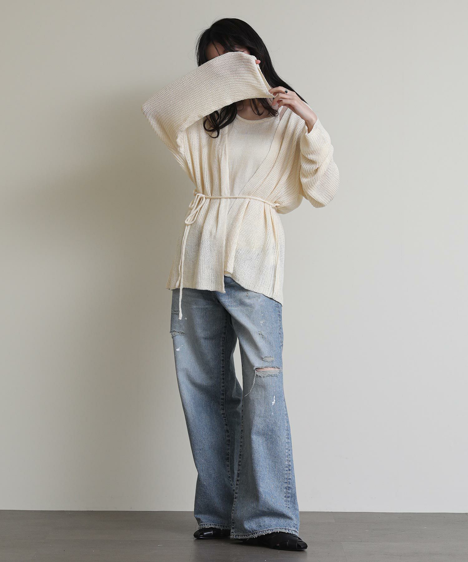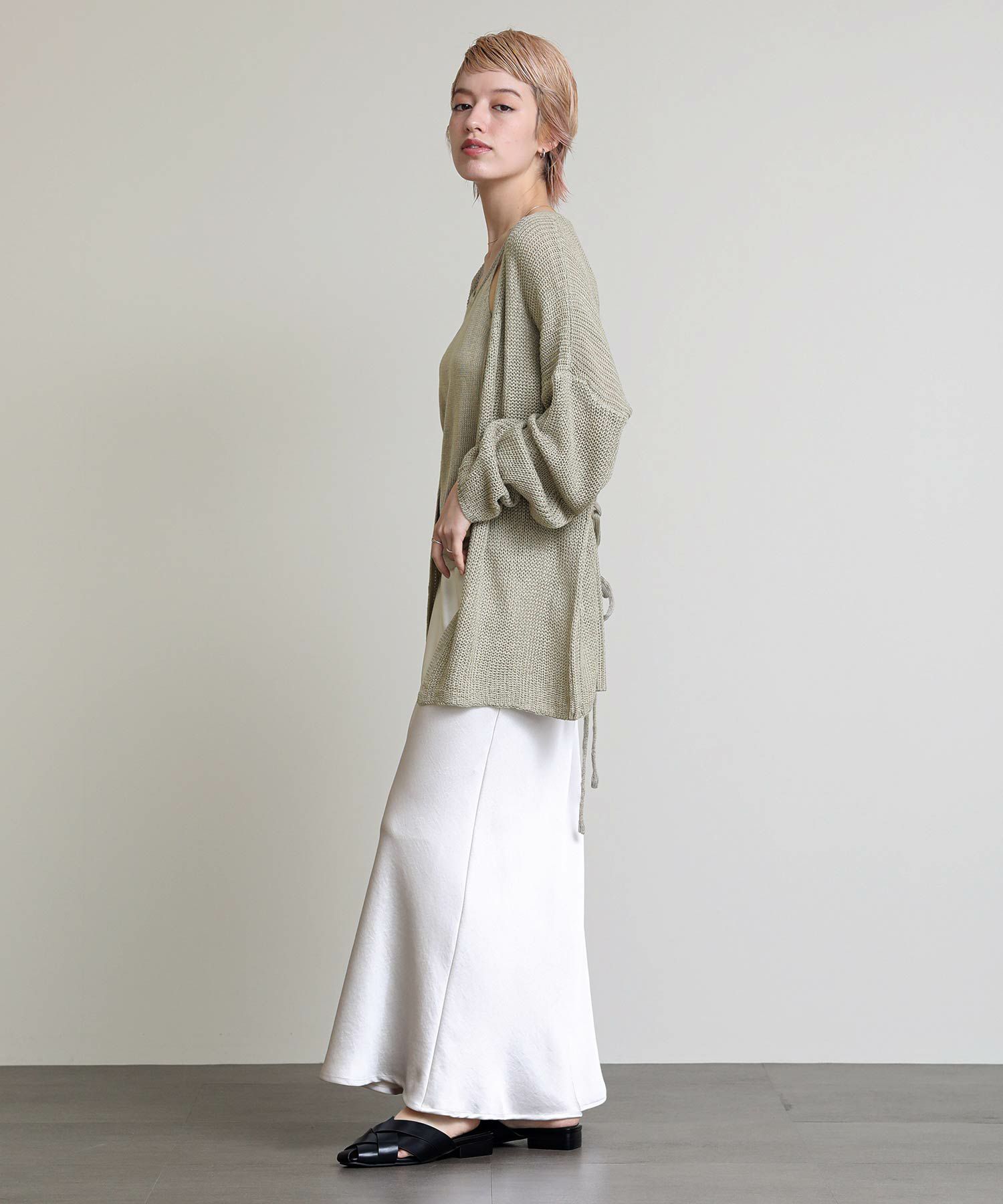 トレンドライクなホルターネックのキャミソールはシャツやカットソーとのレイヤードもオススメ。ミニマルなデザインのカーディガンは付属の紐でウエストマークすることでスタイルアップ効果も◎セットはもちろん単品でもマルチウェイに着回しのできるおすすめアイテムです。