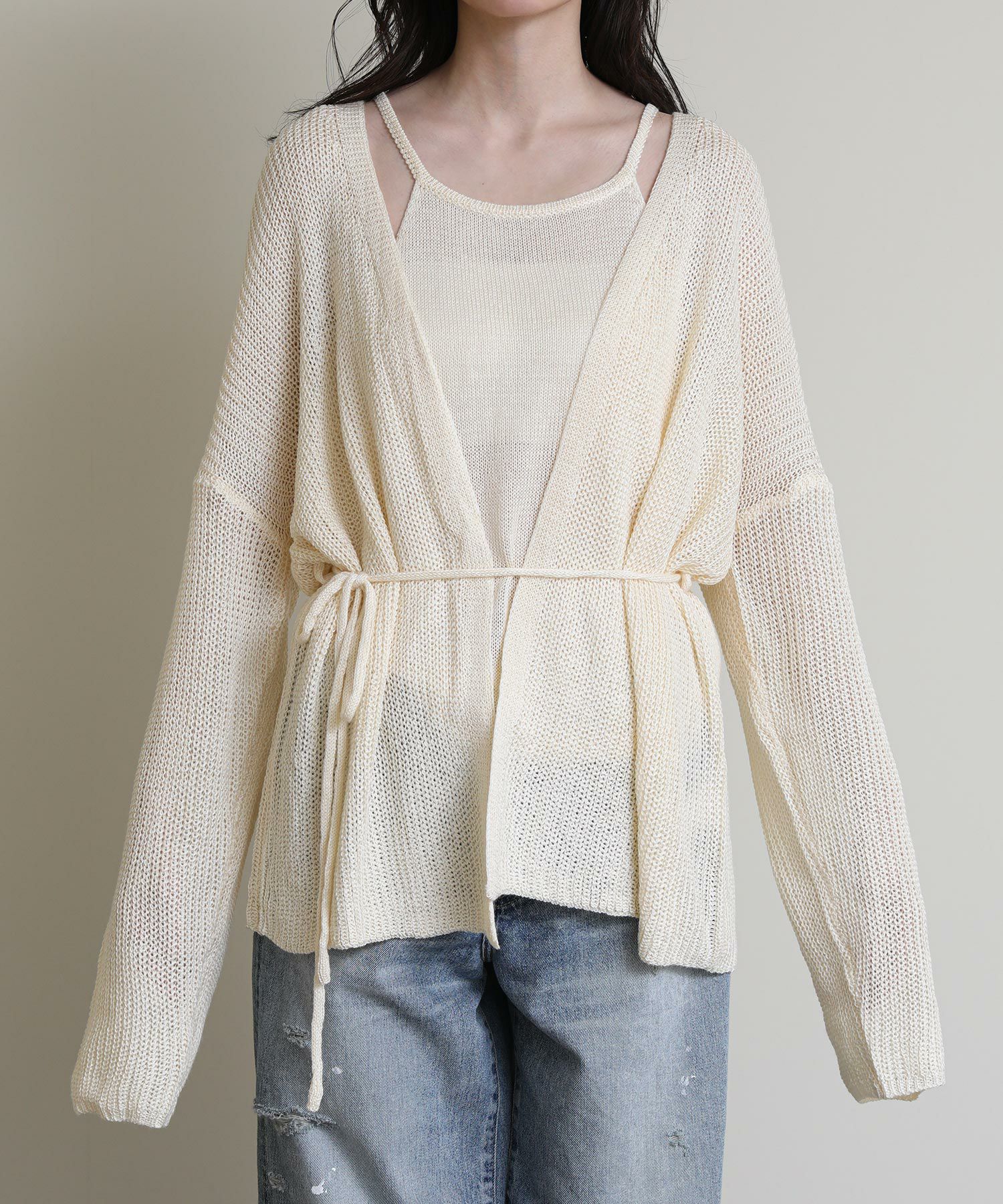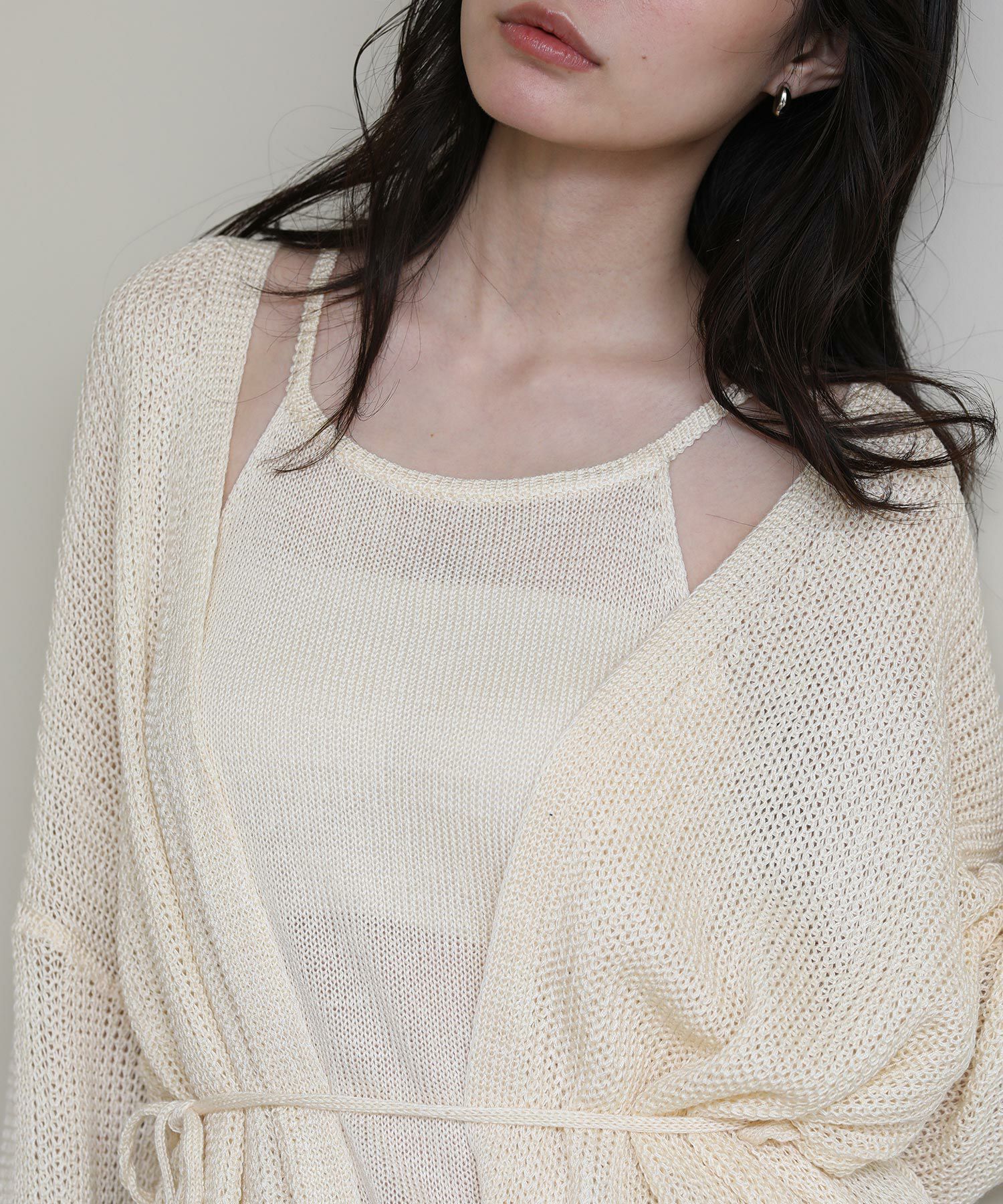 ニットのキャミソールとカーディガンがセットになったアイテム。