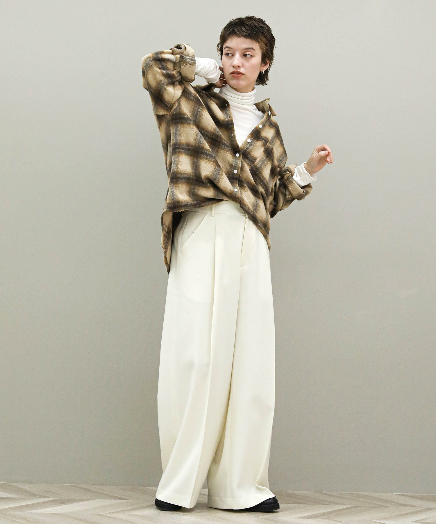 ※着用画像は撮影状況、光の当たり具合で色みが違って見える場合がございます。実際の色みについては、画像一覧の最後に掲載している詳細画像をご参照ください。