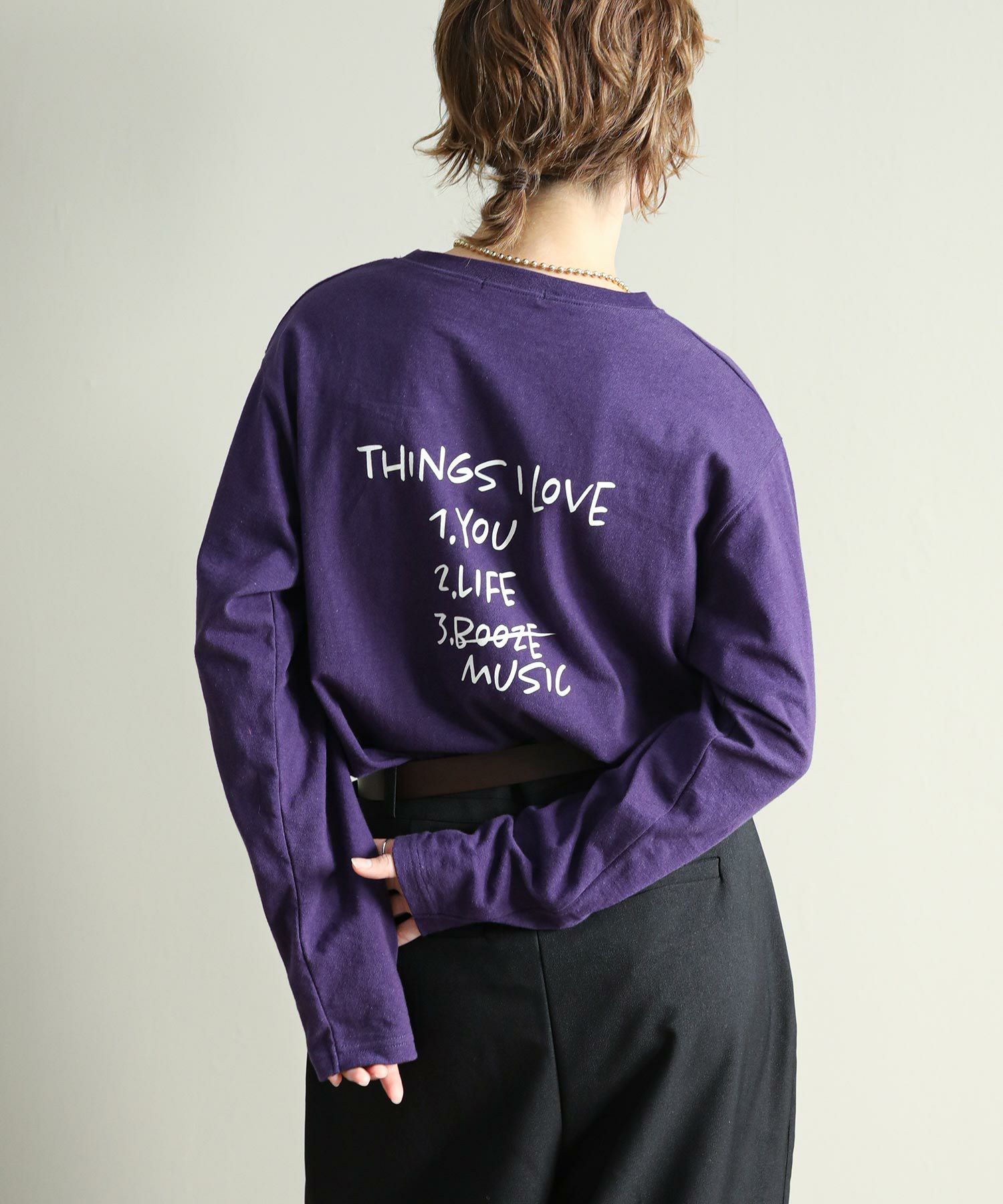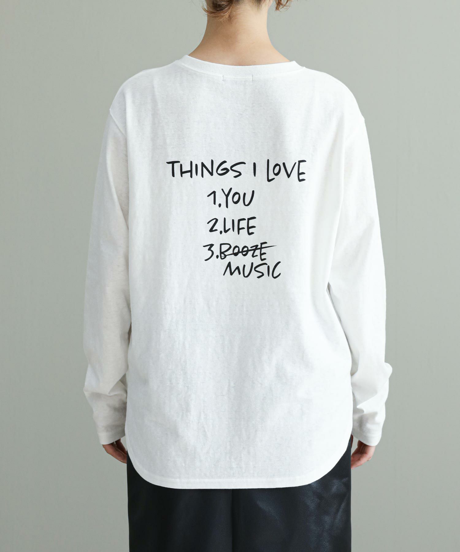 ヴィンテージライクな柔らかい生地を使用しています。裾をラウンドにしているのでニットやスウェットとレイヤードして裾から覗かせても◎今シーズンのロゴテーマは80’Sニューヨーク。フロントのロゴの「あなたの好きなもの教えて」の問いに架空のニューヨーカーの女の子がバックプリントで答えています。