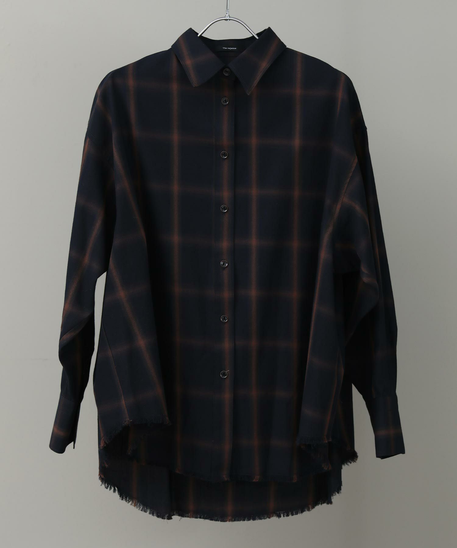 落ち感がある生地で肌なじみも良く、トップスとしてはもちろん、羽織りとしても重宝するアイテムです。裾は切りっぱなしのカットオフデザインになっており、一枚でこなれ感が出ます。肩掛けや腰巻きなどアレンジをするのもオススメ。